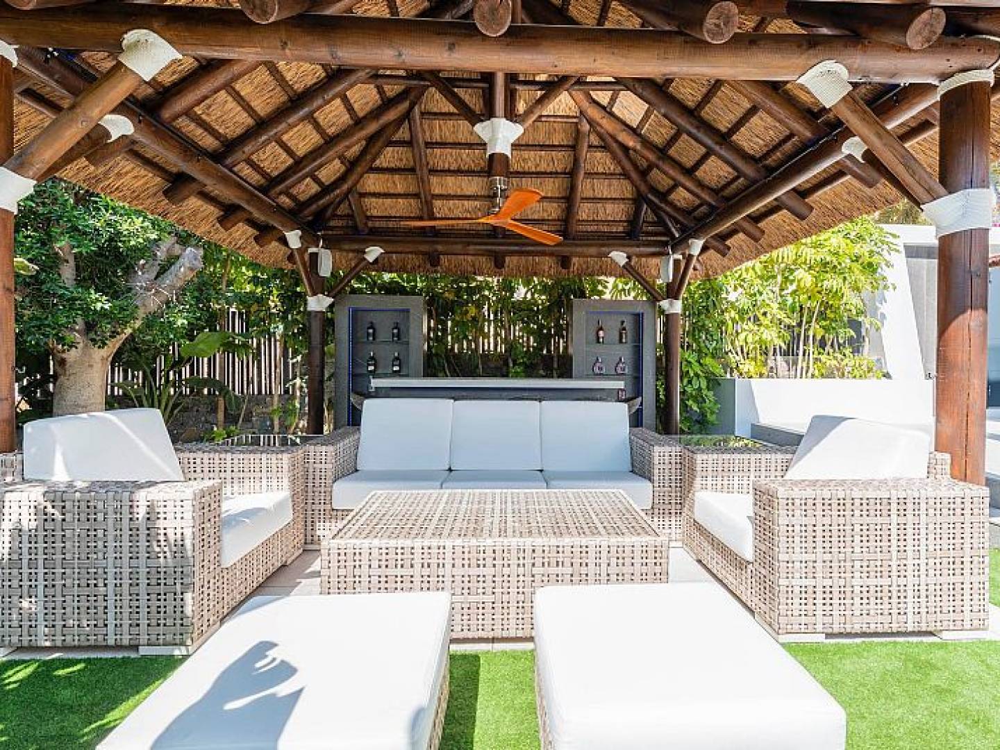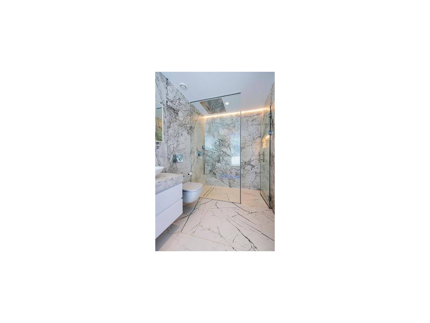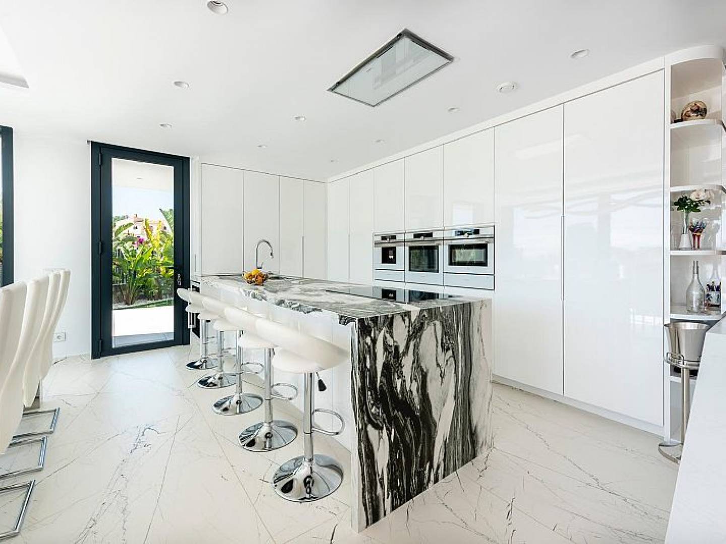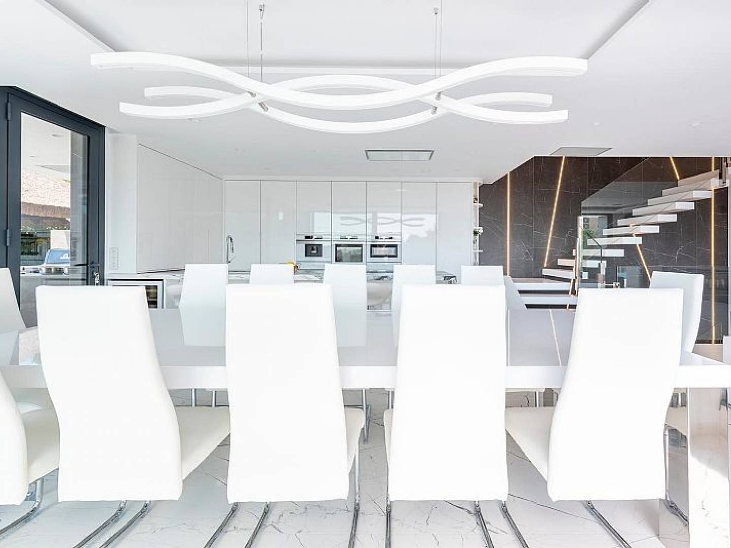 The villa's interior is equipped with luxury features that ensure maximum comfort. Marble floors add a touch of elegance, while the underfloor heating system ensures a pleasant temperature year-round. The villa is fully furnished and equipped with high-end appliances, making for a hassle-free move. Electric shutters and the home automation system provide additional convenience and security. Additionally, air conditioning ensures a cool and comfortable environment during the warmer months. Built-in wardrobes in the bedrooms offer ample storage space.
