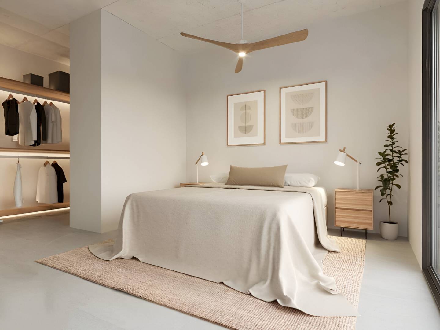 The interior of these townhouses is carefully designed to offer comfort and style. With three bedrooms, each property is ideal for families or those needing extra space. The two bathrooms ensure convenience for all residents. The homes are equipped with built-in wardrobes, providing efficient storage and keeping the space tidy. Additionally, they feature underfloor heating, ensuring a warm environment during the colder months. The pre-installation for air conditioning allows for easy adaptation to each resident's temperature preferences.