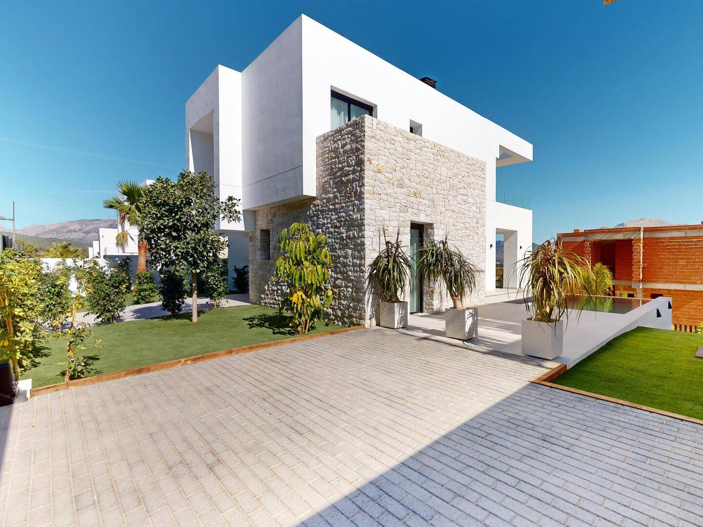 The interior of these independent homes in Polop is equipped with high-quality features that ensure maximum comfort and convenience. Each home has three bedrooms and three bathrooms, providing a spacious and functional area for the whole family. The ceramic flooring adds a touch of elegance and is easy to maintain. The homes are equipped with air conditioning and underfloor heating, ensuring a comfortable environment year-round. The inclusion of modern appliances, electric shutters, and an advanced home automation system facilitates daily living. Built-in wardrobes offer efficient storage, while the video intercom adds an additional level of security.