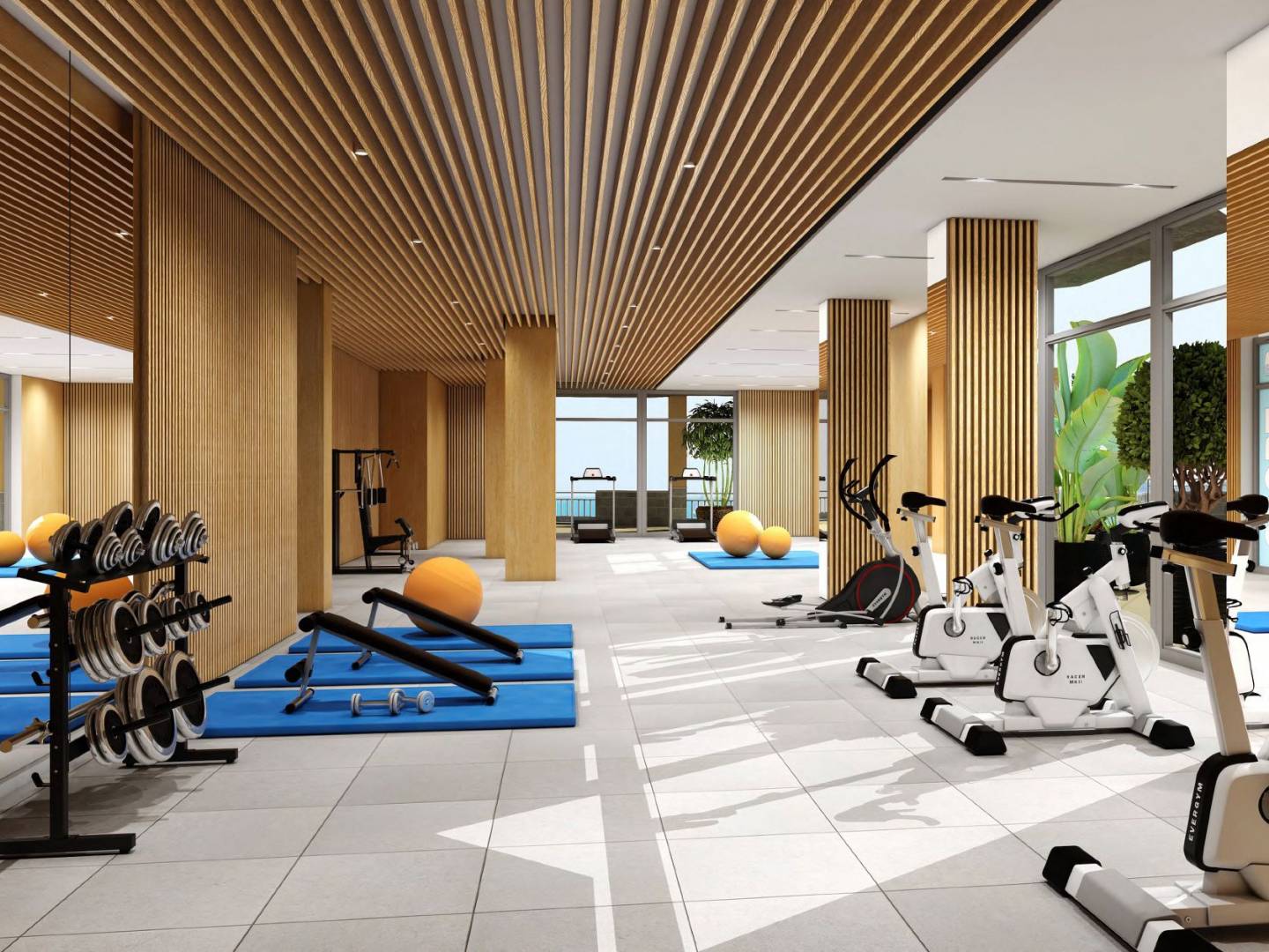 The interiors of the residences are carefully designed to offer maximum comfort and functionality. The apartments and penthouses are available in 1, 2, and 3-bedroom configurations, with 1 or 2 bathrooms, catering to the needs of each resident. Ceramic floors add a modern touch and are easy to maintain. The air conditioning installation and additional pre-installation ensure a pleasant environment throughout the year. Electric shutters and the video intercom add an extra level of comfort and security. Built-in wardrobes optimize storage space, maintaining order and organization in the home.