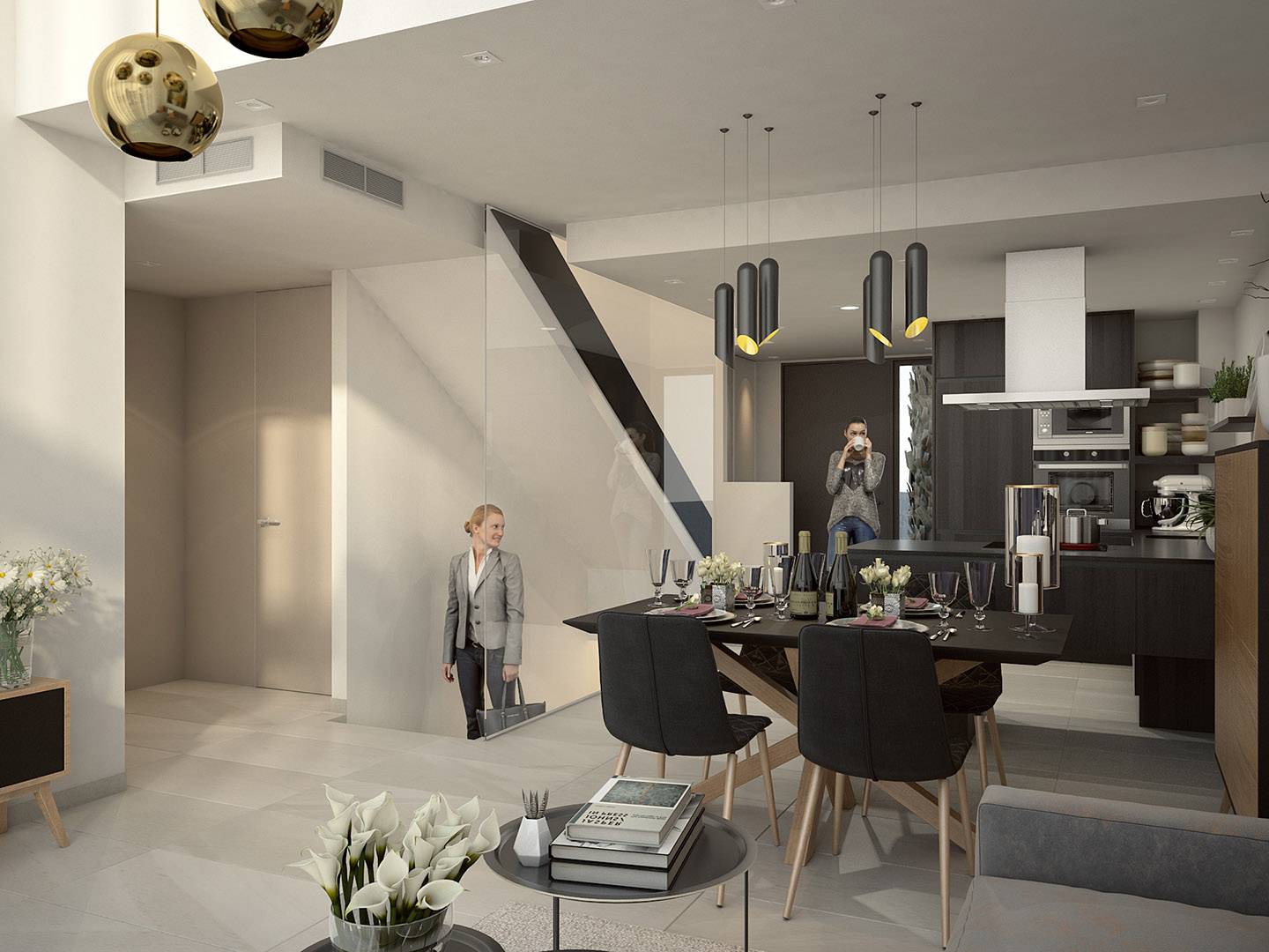 The interior of these homes has been designed with comfort and functionality in mind. Each property features three bedrooms and two bathrooms, offering a spacious and well-distributed area for the whole family. The homes are equipped with air conditioning and underfloor heating, ensuring a comfortable environment throughout the year. Built-in wardrobes provide efficient storage, keeping spaces tidy and clutter-free. The interior design focuses on quality and detail, creating a cozy and modern environment that invites relaxation and enjoyment.