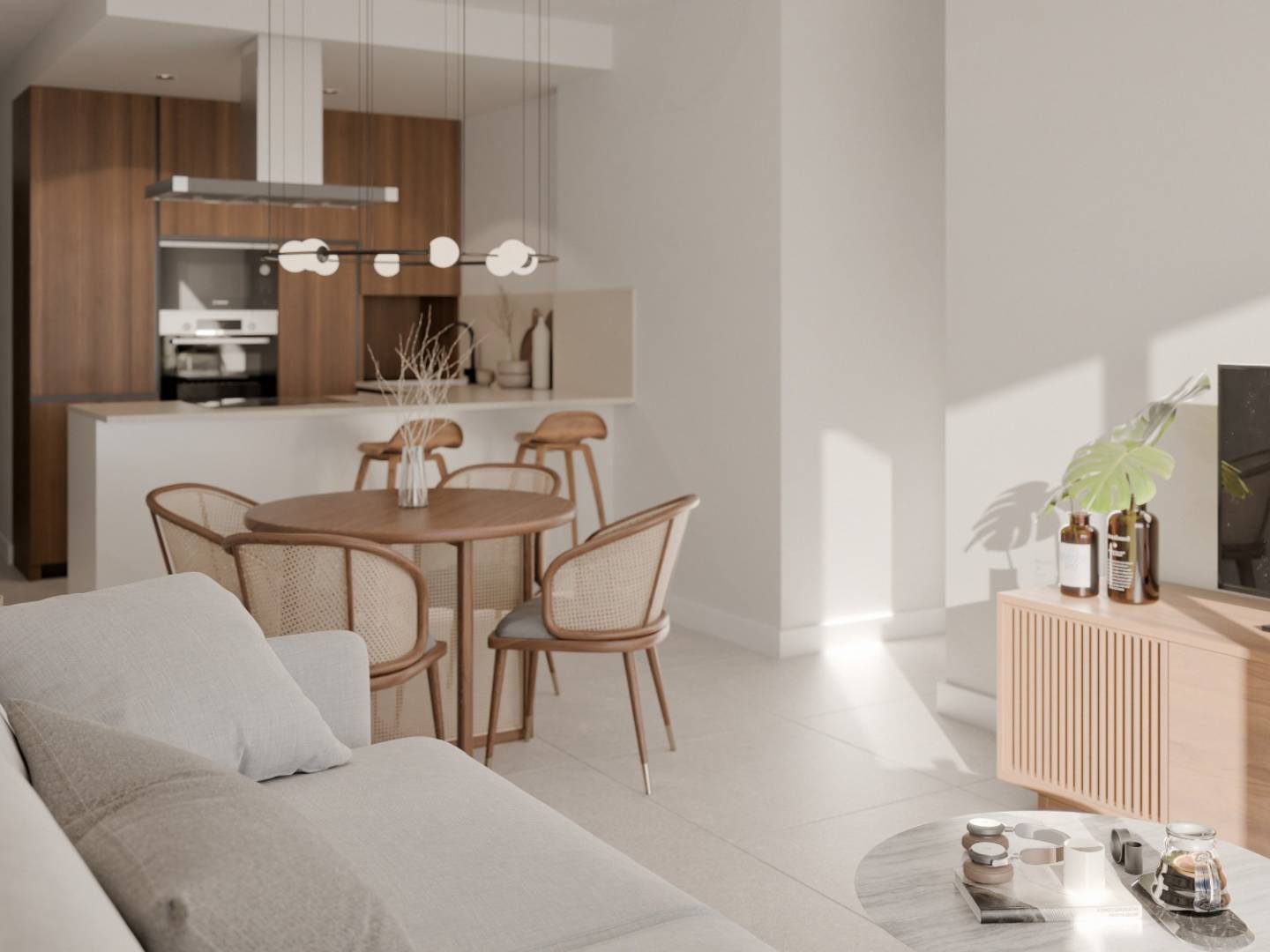 The homes are equipped with modern features that ensure comfort and style. All properties come furnished and equipped with appliances, making the move and the start of a new life easier. Porcelain tile floors add a touch of elegance and are easy to maintain. Electric blinds and built-in wardrobes are details that add functionality and comfort. Furthermore, pre-installed air conditioning allows residents to personalize the indoor climate to their preferences.