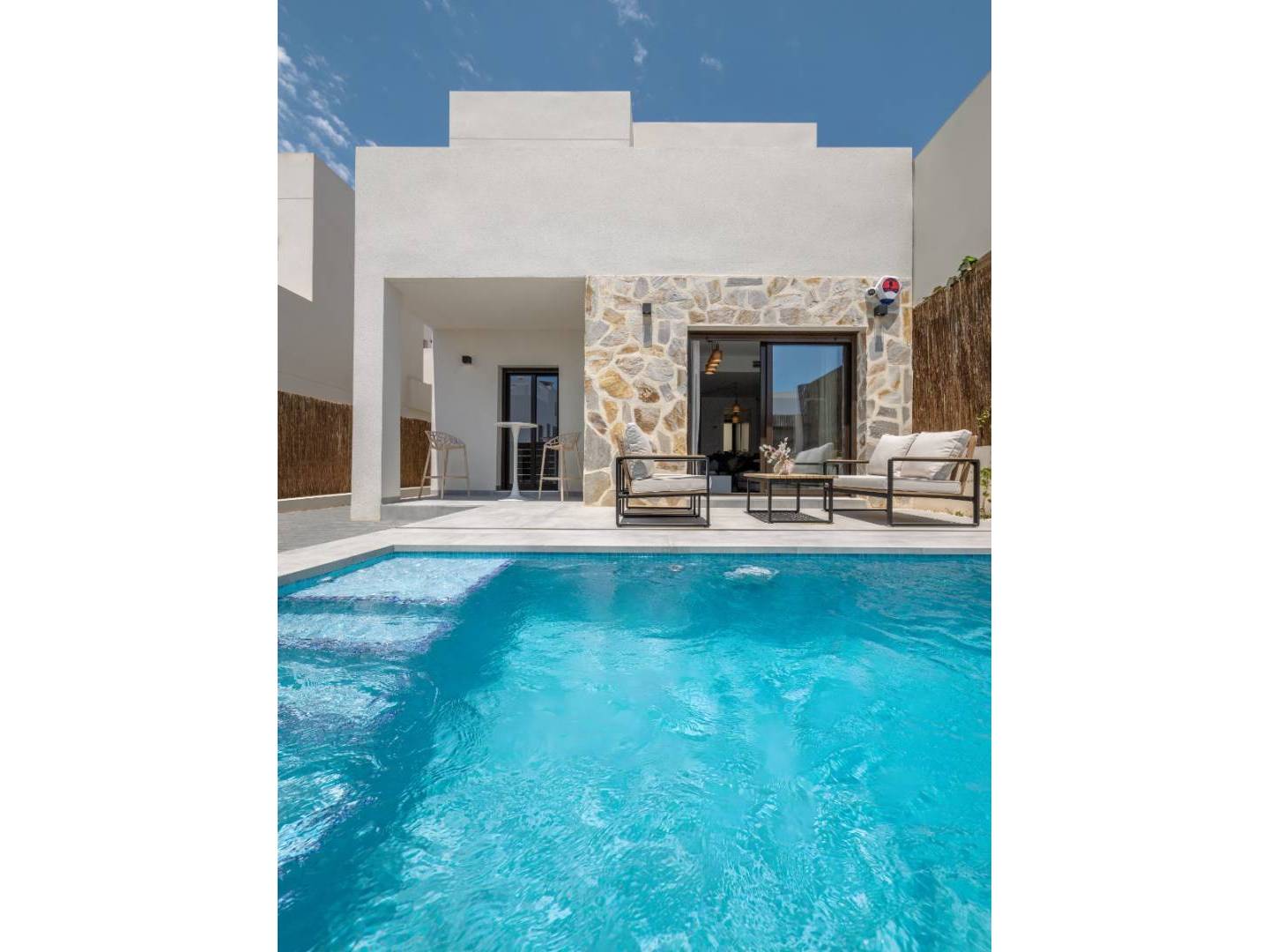 This residential project consists of 25 two-story villas with various models, detached or semi-detached, with 3 bedrooms and 2 bathrooms, as well as beautiful private gardens and a large communal area with a fantastic pool. In addition, each villa has its own pool and parking space.
