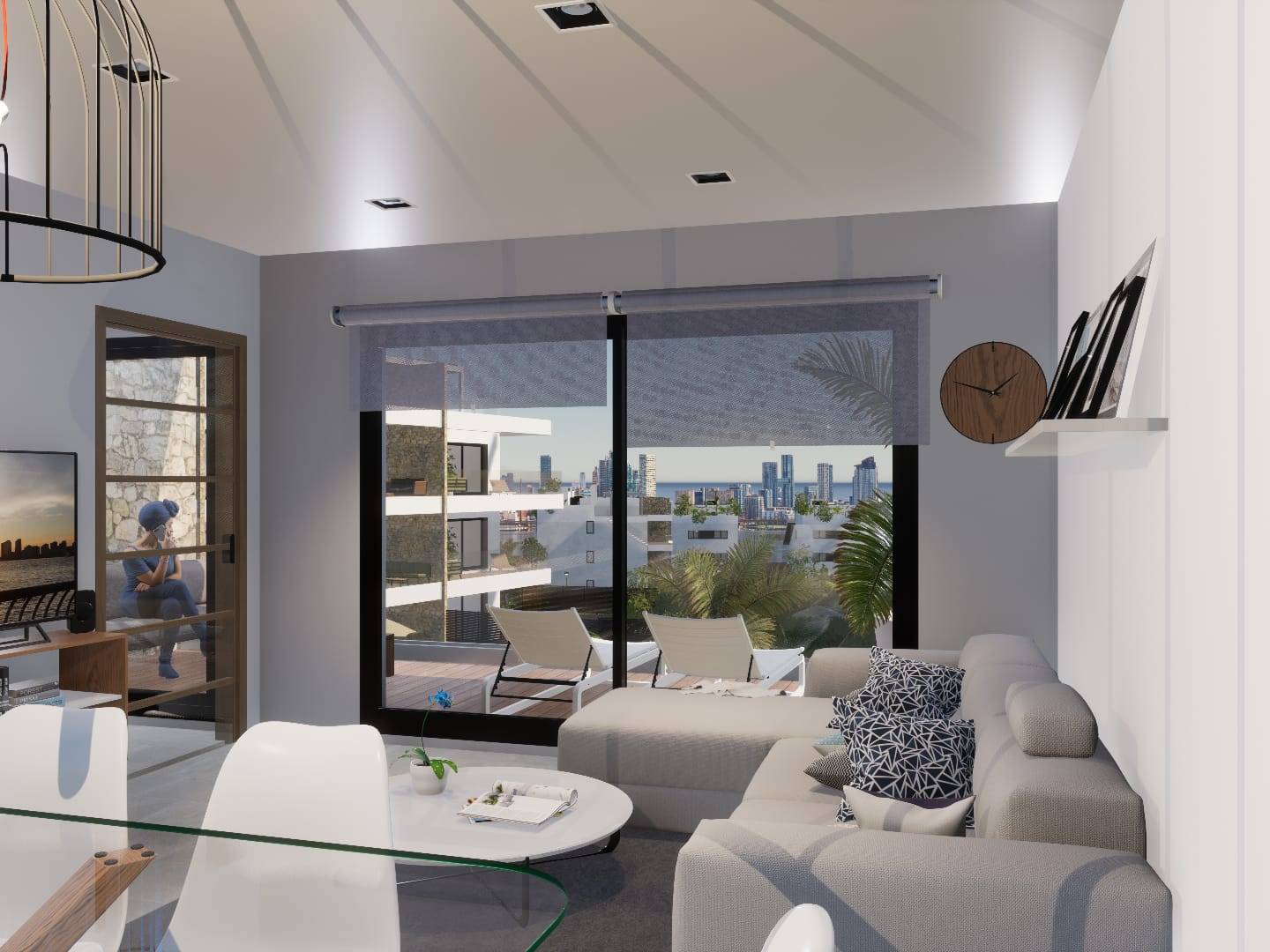 Located in the charming town of Finestrat, this exclusive residential complex offers a selection of 25 homes designed to enjoy maximum comfort and elegance. The available types include apartments, ground floors, and penthouses, all with stunning sea views, ensuring a privileged living environment. The location is ideal, just 4 km from the sea, allowing you to enjoy the sea breeze and a tranquil, relaxing atmosphere.