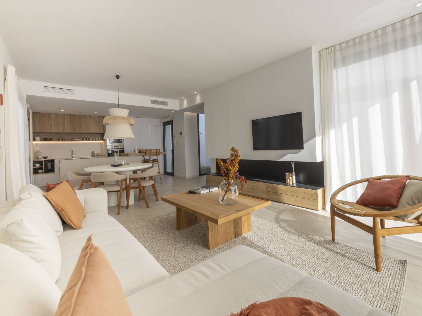 The interior of these detached homes in Murcia is carefully designed to offer comfort and style. Ceramic floors provide a modern touch and are easy to maintain. The homes are equipped with appliances, making daily life easier from day one. Built-in wardrobes offer ample storage space, maintaining order and organization. Additionally, the pre-installation of air conditioning ensures the home stays cool during the warmer months, providing a pleasant environment at all times.