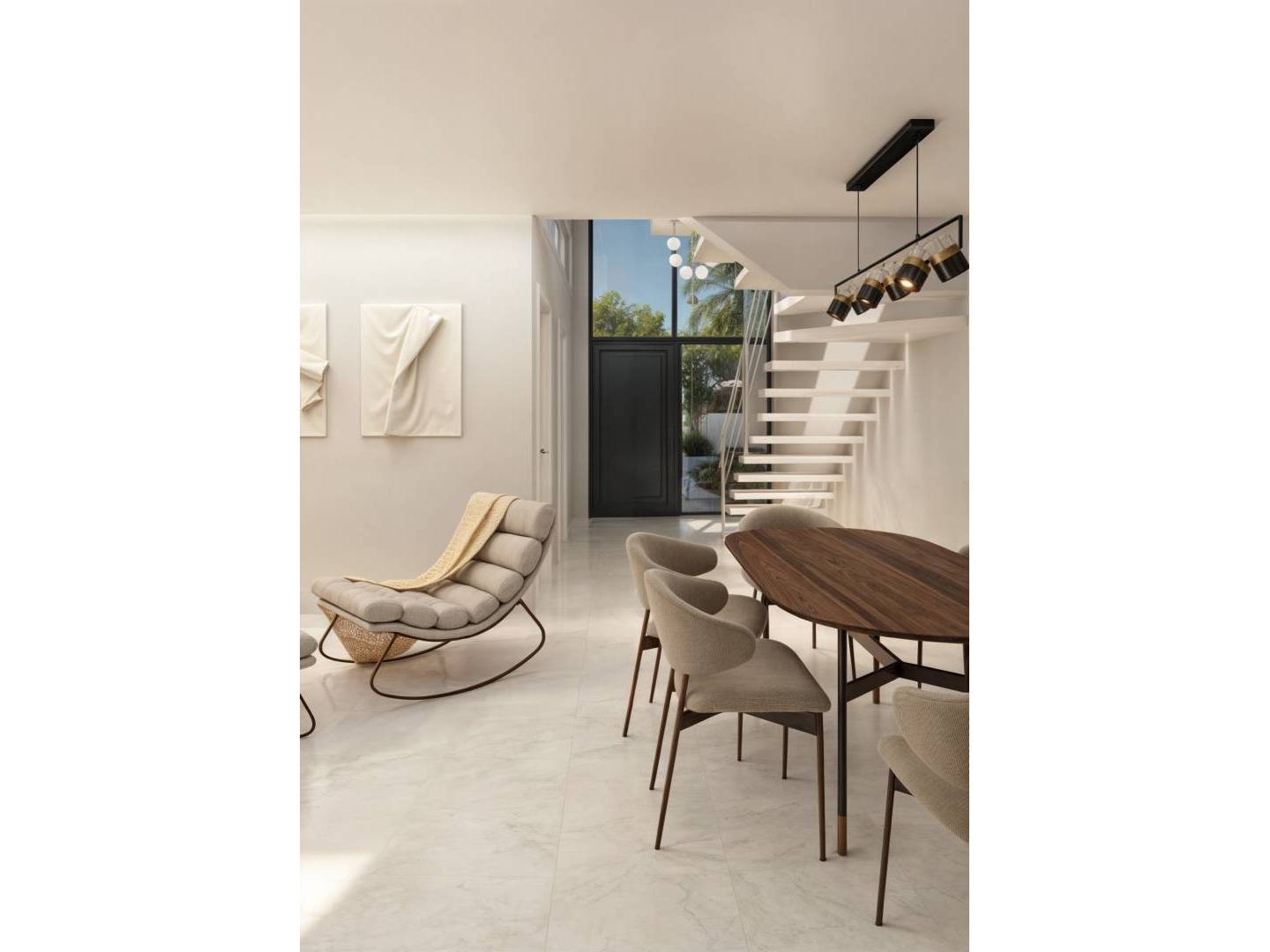 The interiors of these townhouses are carefully designed to offer a cozy and functional environment. With a layout that includes three bedrooms and three bathrooms, each space is optimized for the comfort of its residents. Porcelain tile floors add a touch of elegance and are easy to maintain. The inclusion of modern appliances and built-in wardrobes ensures that each home is ready to be lived in with all necessary comforts. Additionally, the video intercom provides extra security and convenience, allowing efficient control of access to the home.