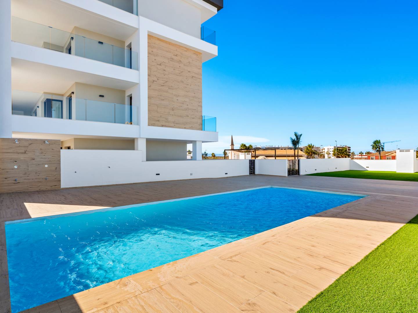 The common areas of the residential are designed to offer a relaxed and comfortable lifestyle. The communal gardens provide a green and serene environment, perfect for strolling or enjoying a moment of tranquility. The communal pool is an ideal meeting point for refreshing and socializing during the warmer months. Additionally, the communal solarium offers an exclusive space for sunbathing and enjoying panoramic views. The communal parking ensures that all residents have a safe and accessible place for their vehicles, complementing the amenities of this residential.