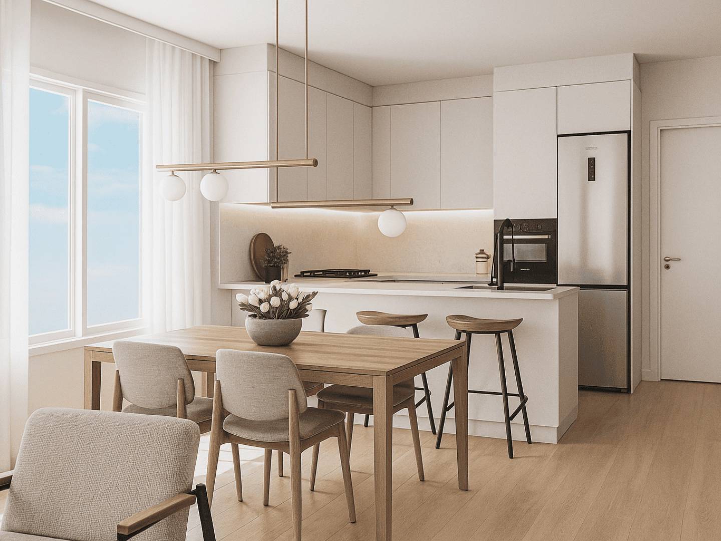 The interior of the bungalows is designed with attention to detail, incorporating modern features that ensure comfort and functionality. Porcelain tile floors add a touch of elegance and are easy to maintain, while electric shutters and a video intercom add an extra level of convenience and security. The homes are equipped with appliances, facilitating daily life from day one. Additionally, they have pre-installation for air conditioning, allowing residents to customize the indoor climate according to their preferences. With options from one to three bathrooms, each bungalow is prepared to meet the needs of different types of families.