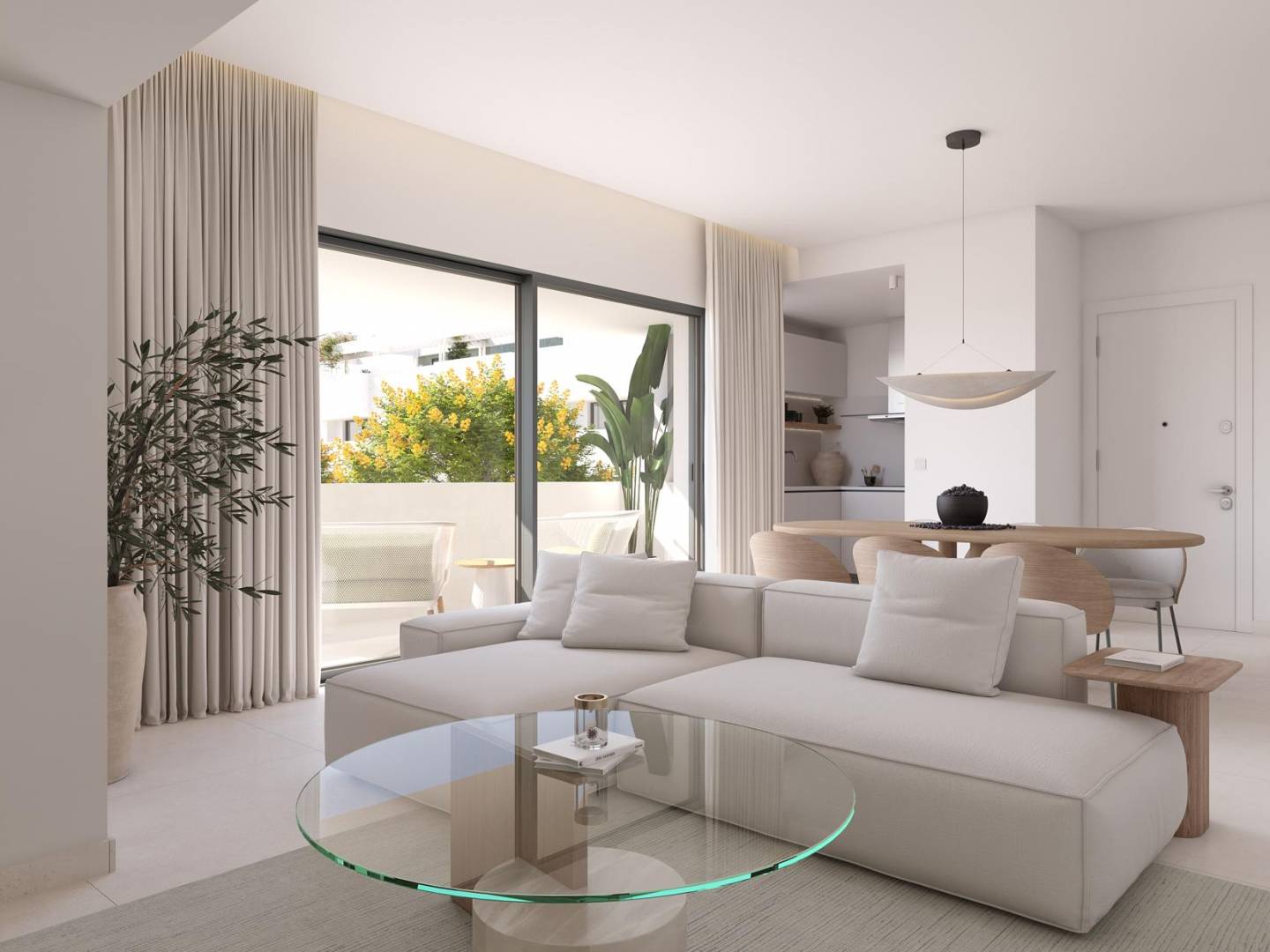 The interior of these homes is carefully designed to maximize comfort and functionality. With options of 2 and 3 bedrooms and 2 bathrooms, each space is optimized to offer a modern and comfortable living experience. Porcelain tile floors add a touch of sophistication and durability, while air conditioning ensures a pleasant environment year-round. Built-in wardrobes provide efficient storage solutions, keeping spaces tidy and elegant. Additionally, some homes feature an optional solarium, providing extra space for leisure and relaxation.