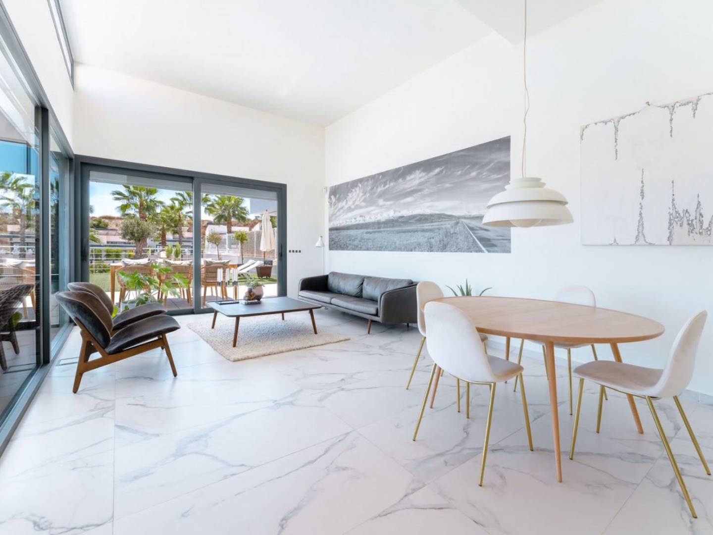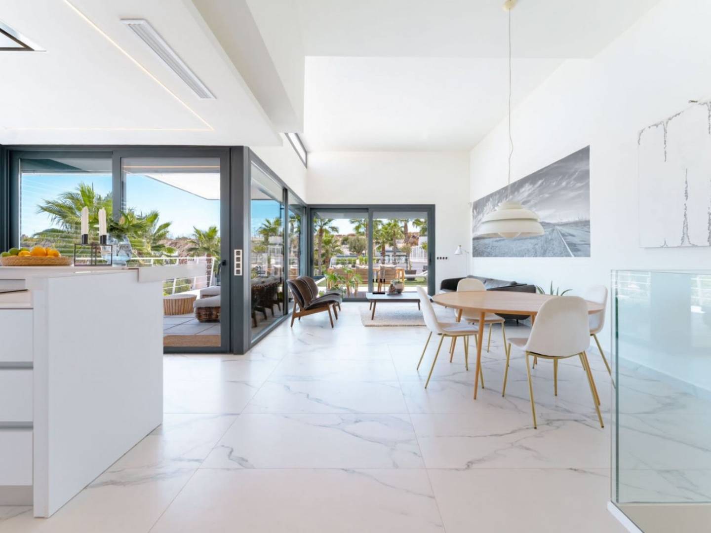 Wonderful Luxury Villa for sale in San Miguel de Salinas, 6km from the most beautiful beaches of the Costa Blanca, with all the basic services that a city can offer less than 10 minutes walk, pharmacies, supermarkets, shops, bars, restaurants, etc. Ideal place to enjoy your holidays or live in it all year round, since you have at your disposal a wide range of activities: The best golf courses, (Villamartín Golf), horseback riding, all the water sports you can imagine, shopping centers full of fun and entertainment, A wide variety of bars and restaurants where you can enjoy the best Mediterranean gastronomic experience. House of 274m² distributed over two floors, on the first floor two bedrooms, one of them en suite with bathroom and a bathroom for guests, as well as a dressing room, living room together with a spectacular American kitchen with breakfast bar. The villa is equipped with a large garage with space for 2 cars, two fully equipped kitchens. The basement has its own separate entrance, as well as a versatile layout, with three bedrooms, two of them en-suite with bathrooms , an office and laundry room, as well as direct access to the garage.