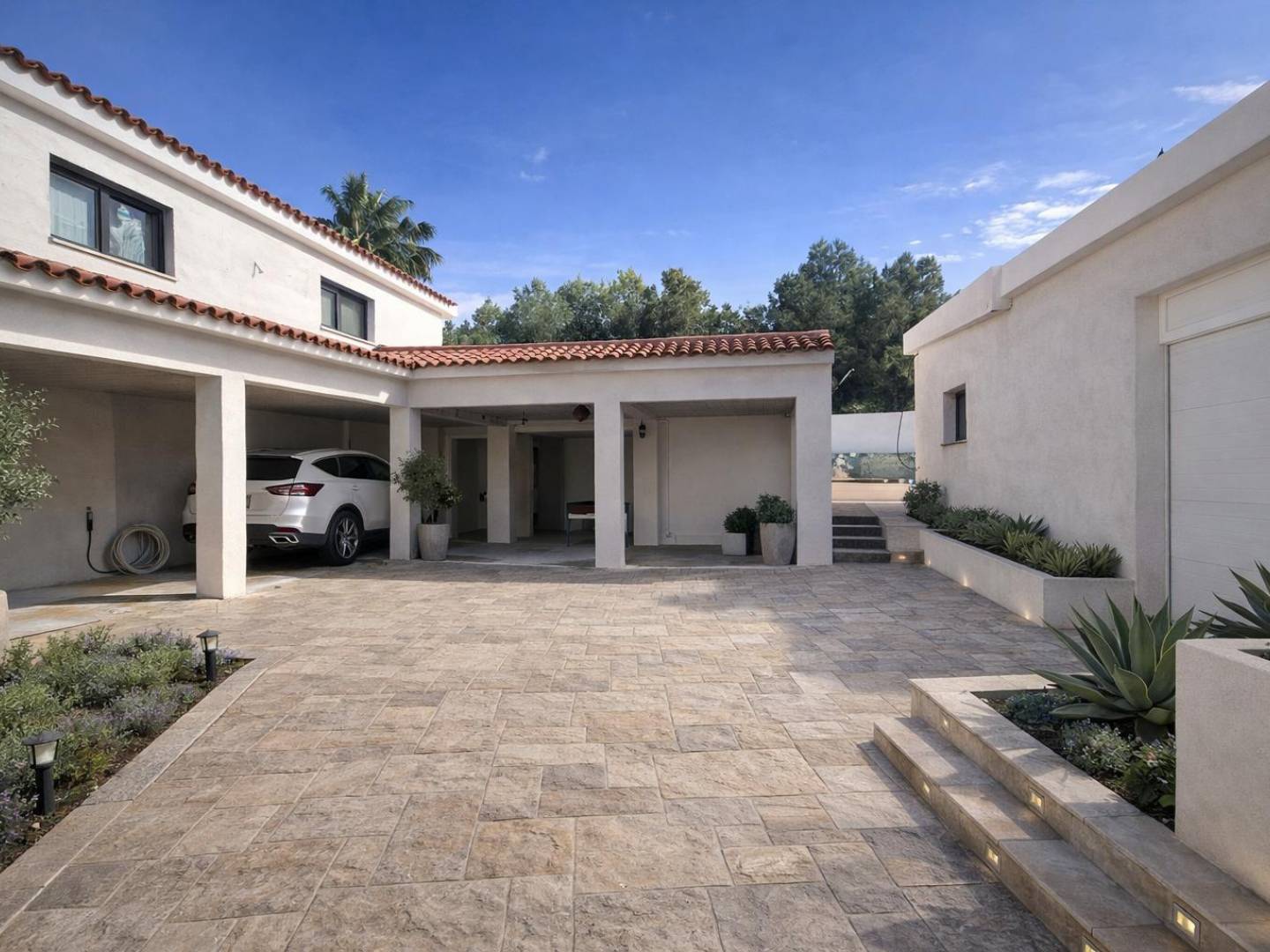 Located in one of the most exclusive areas of El Albir, this newly completed property (spring 2026) sits on a generous plot of 1,200 m², offering a built area of 420 m² designed with a vision of absolute comfort and energy efficiency. The home has been designed with total inclusion in mind, featuring a ramp system that guarantees access for people with reduced mobility throughout the entire perimeter of the site. The main structure is divided into two independent and highly functional levels. On the ground floor, the design prioritizes spaciousness with an integrated living-dining room, kitchen, and two bedrooms, one of which has an en-suite bathroom, as well as a courtesy bathroom. The upper floor replicates this comfort with two more bedrooms and two additional bathrooms, but adds a unique leisure dimension: a dedicated Home Cinema room and an adjoining space ideal for being transformed into a secondary kitchen or bar area, making this level a fully autonomous space. The outdoor experience is enhanced by an independent building next to the 10 x 4.5-meter pool. This "guest house" has its own kitchen, dining area, bathroom, and bedroom, providing total privacy. The wellness area is completed with a pool house that includes pre-installation for heating and a private Hammam. The property stands out for its state-of-the-art technological features. It is equipped with an integrated Smart Home system and advanced photovoltaic infrastructure, with a storage capacity of 11 kWh and backup power of 10 kW, ensuring minimal and responsible consumption. Thermal comfort is guaranteed through split air conditioning (cooling/heating), PVC windows with Climalit double glazing, and high-quality blinds. Additionally, the house is ready for the immediate installation of a fireplace, already having the necessary connection. The attention to detail extends to the exterior, where the garden has been delivered fully completed with an automatic irrigation system, a decorative fountain, and a carefully studied LED lighting design throughout the grounds and stairs. In terms of logistics, the property offers a closed garage for two vehicles with an incorporated bathroom, as well as an exterior carport with space for two more cars. This villa represents a unique opportunity to debut a residence where home automation, solar sustainability, and barrier-free design are just steps away from all the services of El Albir.