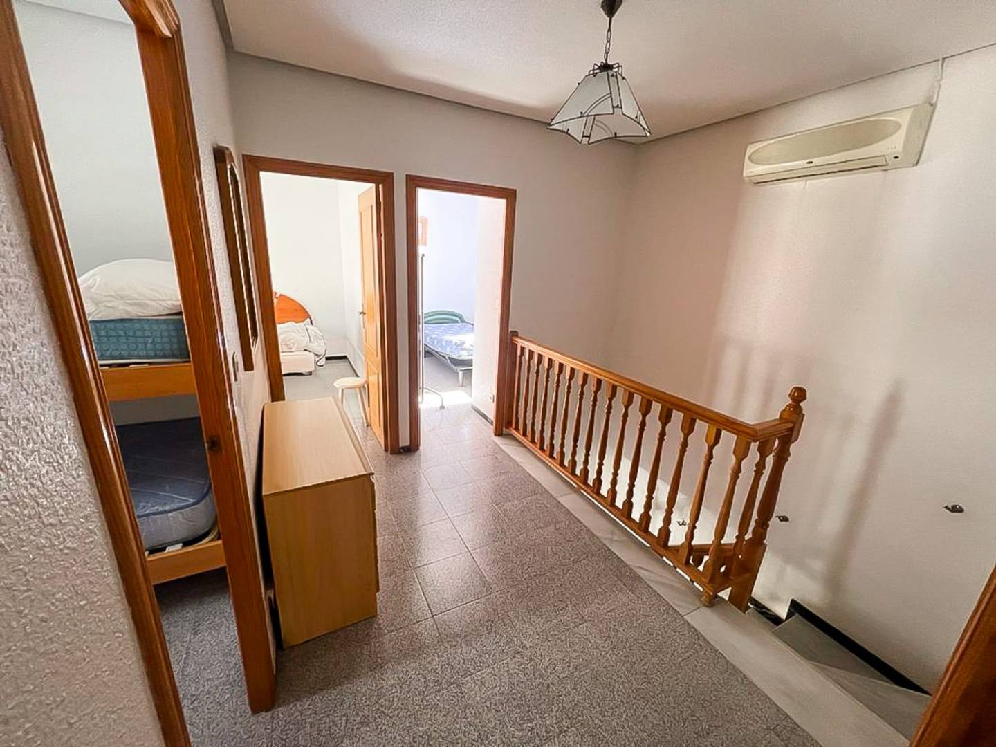 The first floor comprises four spacious bedrooms , two of which have private terraces , and a generously sized full bathroom . The property is notable for its abundant natural light , creating a warm and inviting atmosphere throughout.