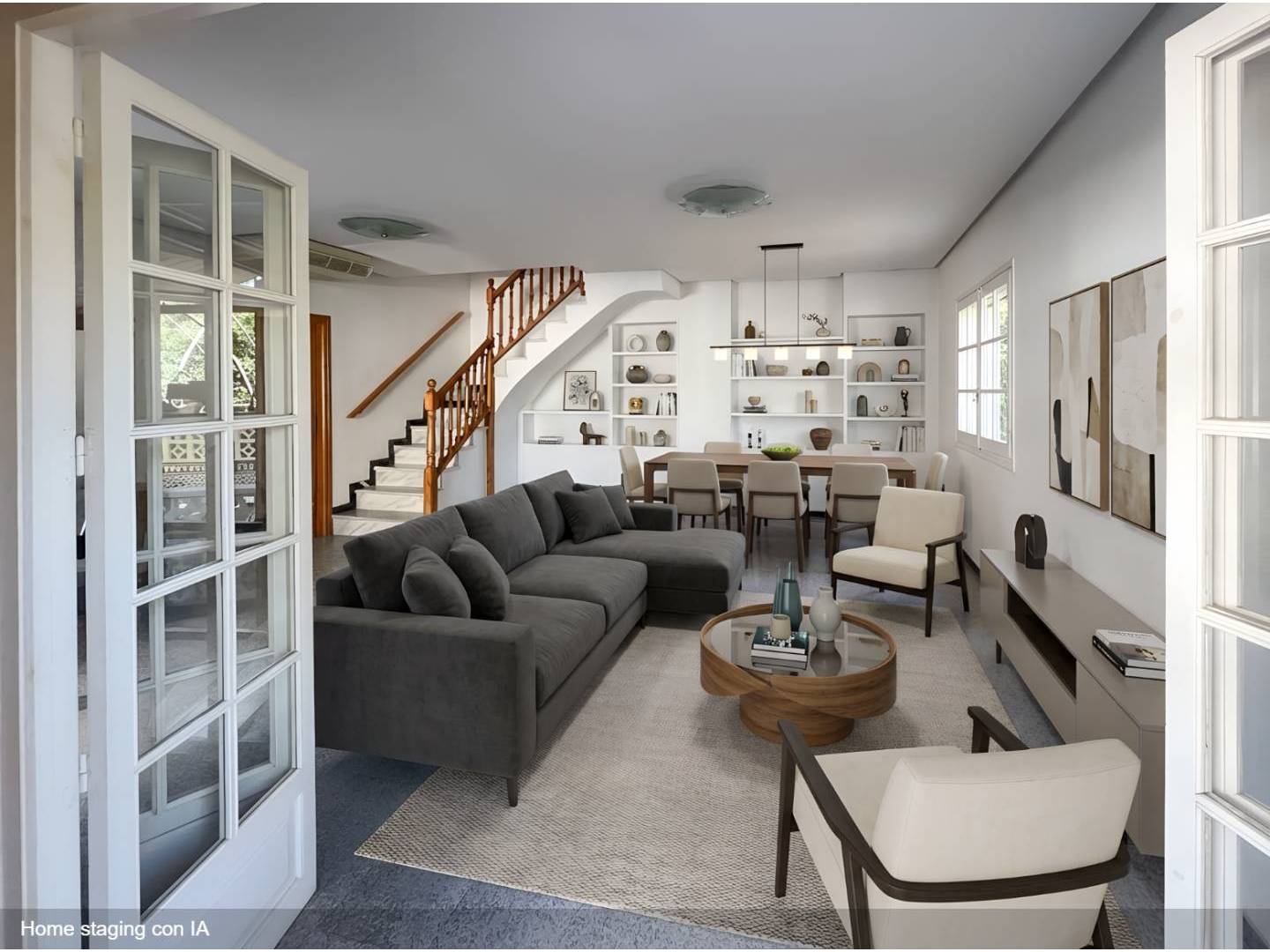 The property listing combines real photos with AI-generated images (AI Home Staging) to showcase some of the property's potential with minimal investment. The AI-generated images may contain entirely fictional furniture that is not part of the property's actual inventory.
