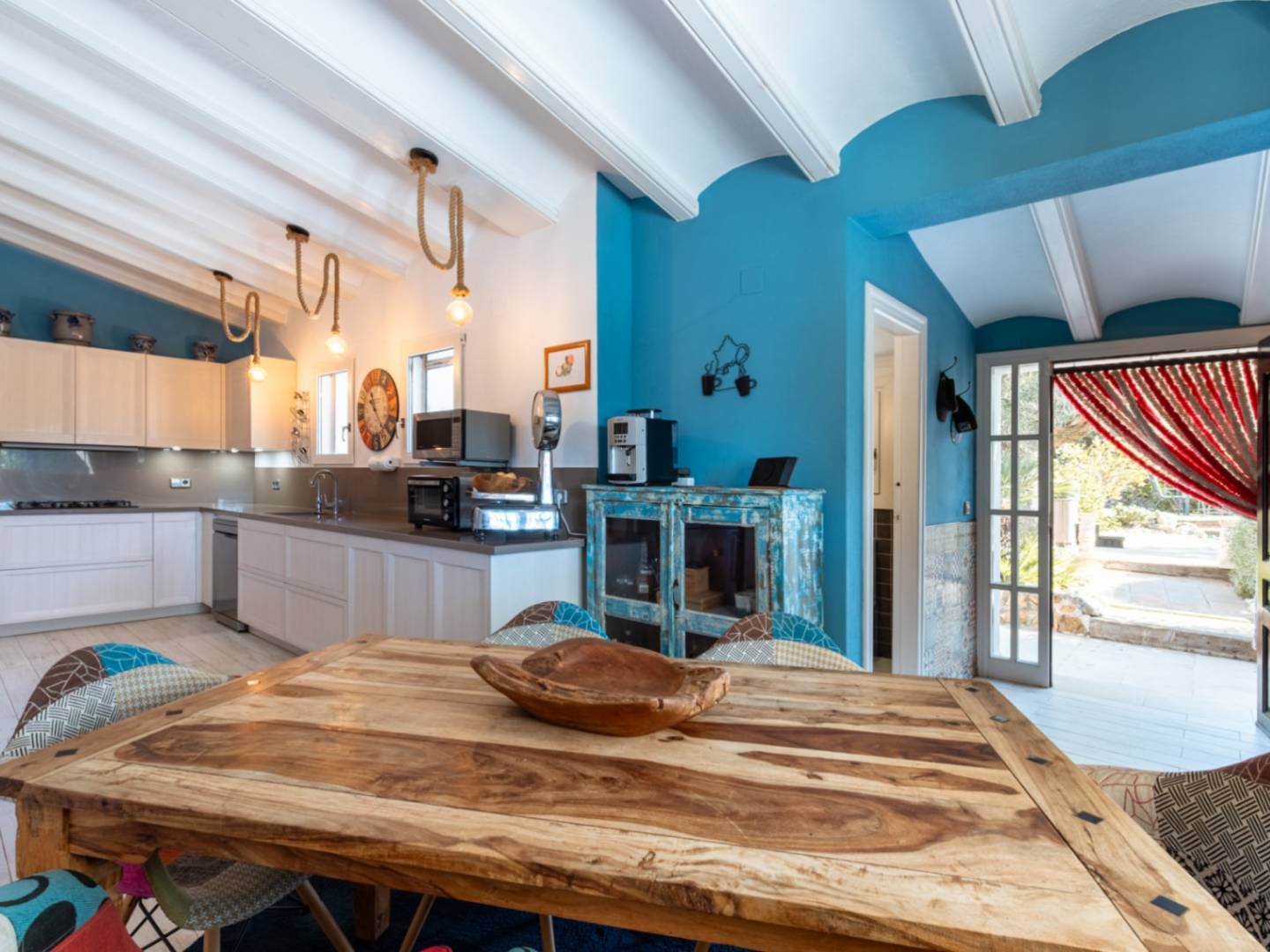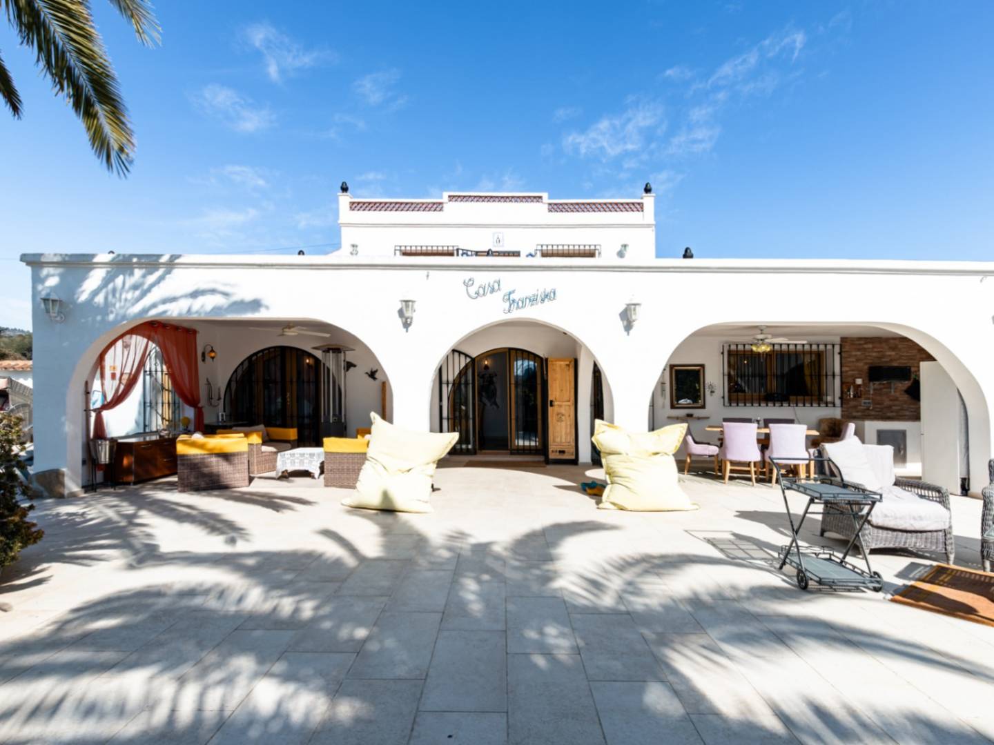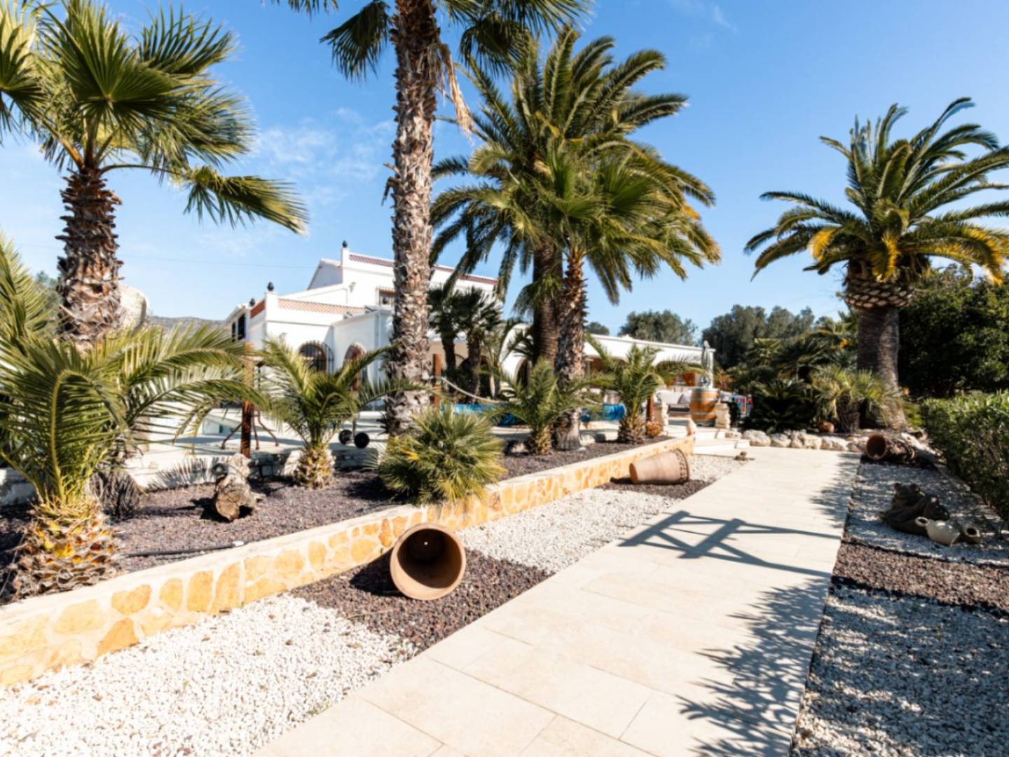 Located just minutes from the city center and the coast, this immaculate renovated estate represents the perfect balance between the charm of the Spanish countryside and the functionality of a high-quality modern refurbishment. Access to the property, whether via its pedestrian entrance or through its electric gates, leads to a spacious parking area with covered capacity for four vehicles, anticipating the spaciousness and order that define the entire plot. The residence is intelligently distributed over three levels, where natural stone and original architectural details coexist with a comprehensive technical renovation. The sleeping area comprises three main bedrooms and an additional intermediate room, currently optimized as an office, which grants access to a generously sized bathroom equipped with both shower and bathtub. Furthermore, the two secondary bedrooms benefit from the convenience of their own private bathrooms with showers, complemented by a separate guest toilet for added functionality. The heart of the home consists of a spacious living room and dining room, specifically designed for entertaining and socializing, equipped with both a gas fireplace and a wood-burning stove. The kitchen, featuring high-end appliances, is supported by a private wine cellar and an independent laundry room. In terms of sustainability, the estate stands out with its installation of 15 solar panels that supply power to the entire home, reinforced by central heating via underfloor heating and cold/heat air conditioning. The outdoor lifestyle is one of the greatest assets of this property. A large terrace hosts a fully equipped outdoor kitchen with a Broil King gas barbecue and a traditional wood-fired oven. The meticulously maintained garden surrounds a 9.5 m x 5 m swimming pool that features its own cover, ideal for extending the bathing season. The outdoor facilities are completed with ambient lighting, an irrigation system, 15 types of fruit trees in production, a private jacuzzi, and a pétanque court. In addition, the plot includes a separate building and a garden shed that offer valuable versatile storage space. With double-glazing and mosquito nets on all windows, this estate is an exceptional opportunity for those seeking a ready-to-move-in residence, where energy efficiency and privacy are just a step away from all services.