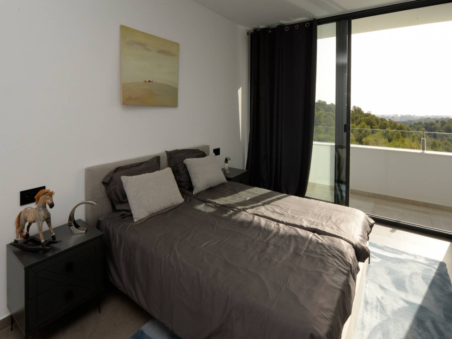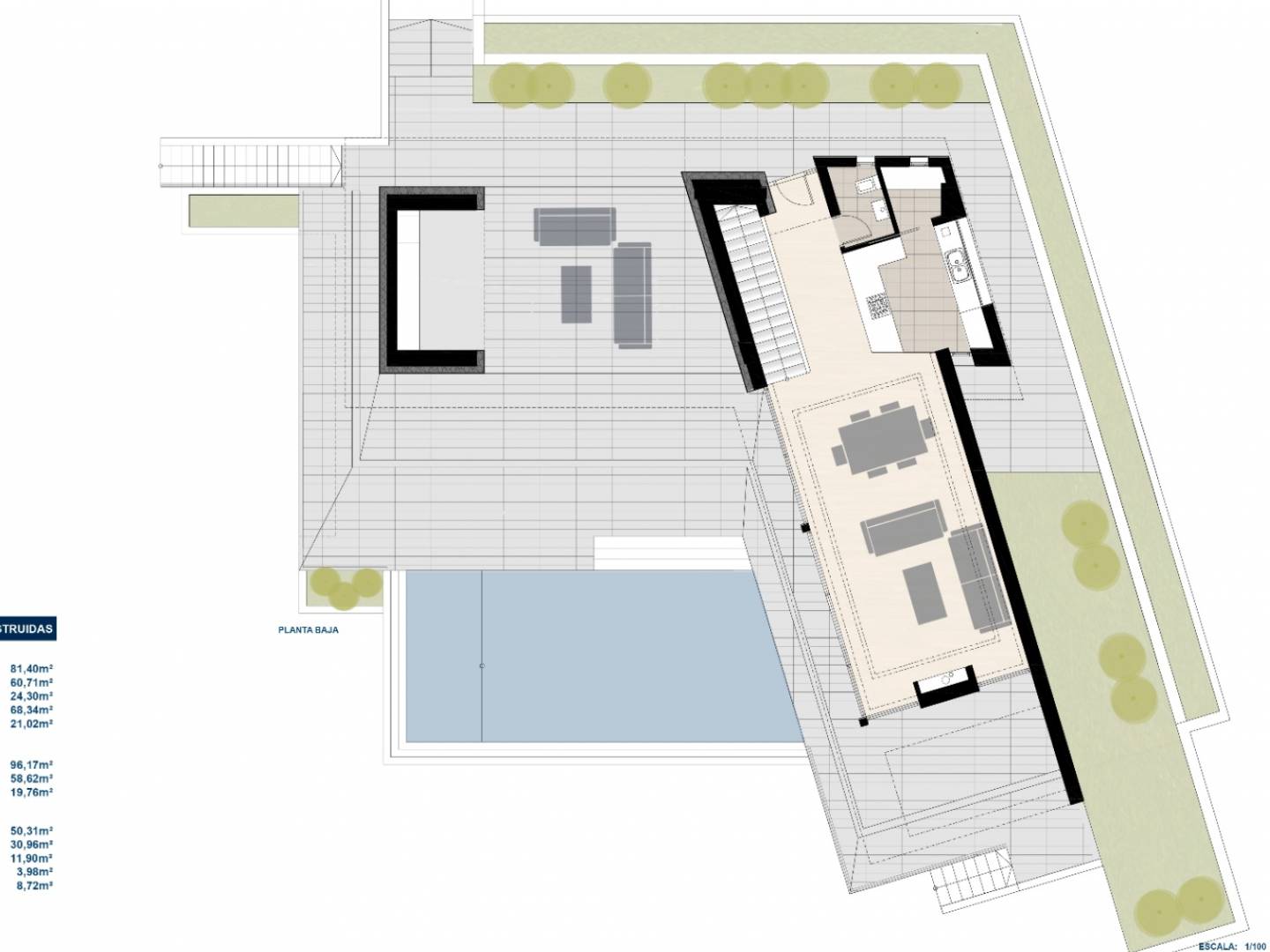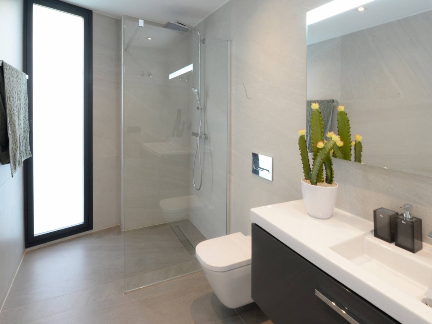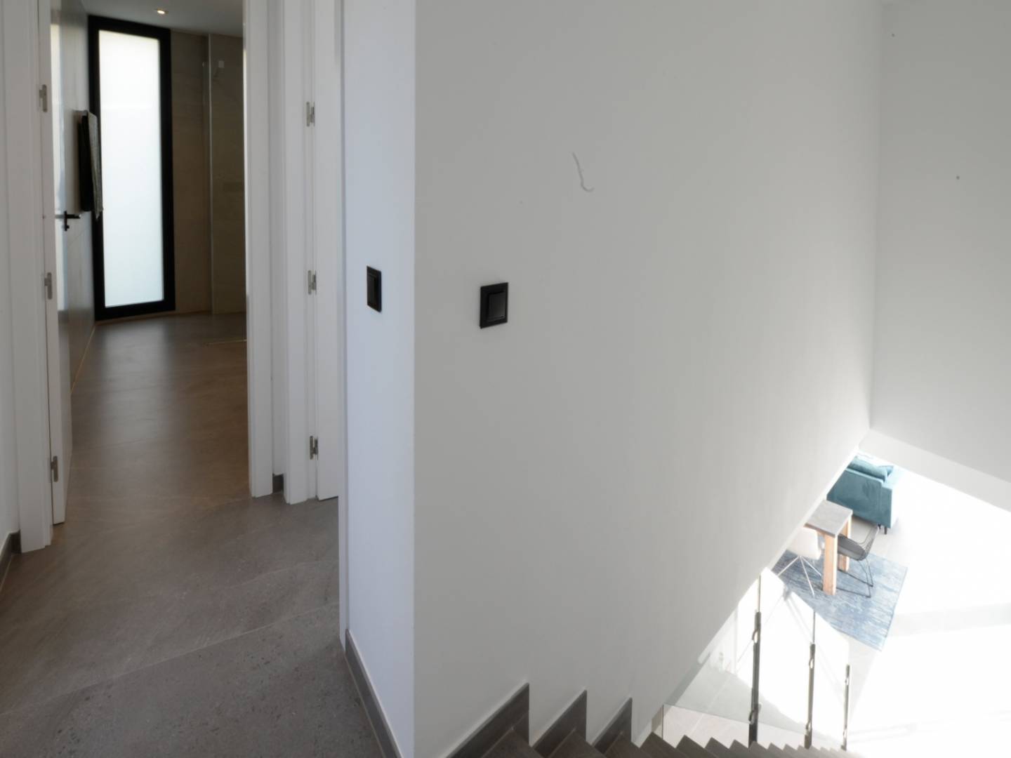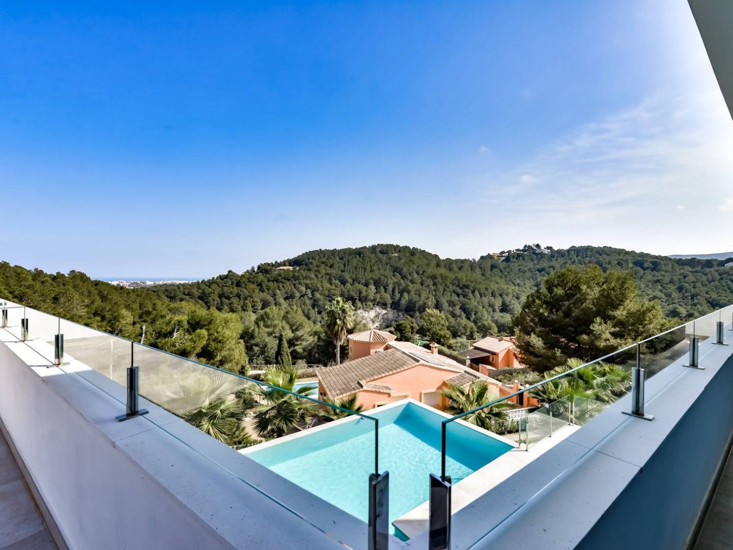 This impressive modern villa is located in a privileged position in Jávea, designed to perfectly integrate into the Mediterranean landscape with cutting-edge architecture that stands out for its pure shapes and straight lines. The property offers a spectacular panoramic view over the green hills reaching the blue of the sea, even allowing for a glimpse of the island of Ibiza on the clearest days. Its design achieves an exciting combination of classic elements with state-of-the-art materials, creating an atmosphere of luxury and exclusivity. The main floor consists of a spacious and bright living-dining room connected to a fully furnished and equipped high-end kitchen with a ceramic hob, oven, microwave, and dishwasher. This area is completed with a practical adjoining laundry room and a guest toilet. The interior space flows naturally to an extensive covered terrace with a barbecue area, perfect for enjoying the shade and sea views during the summer months. The outdoor area is crowned with a spectacular infinity pool equipped with underwater lights and a spacious entry area. On the upper floor is the resting area, which houses three bedrooms and two full bathrooms. The master bedroom has an en-suite bathroom, and all rooms have direct access to the rooftop terrace to maximize natural light entry. The lower level of the house offers a double garage with an automatic door and a spacious multifunctional basement. As for technical facilities, the villa has a centralized air conditioning system and heating via a heat pump supported by solar energy, ensuring maximum comfort and energy efficiency in all areas of the building.