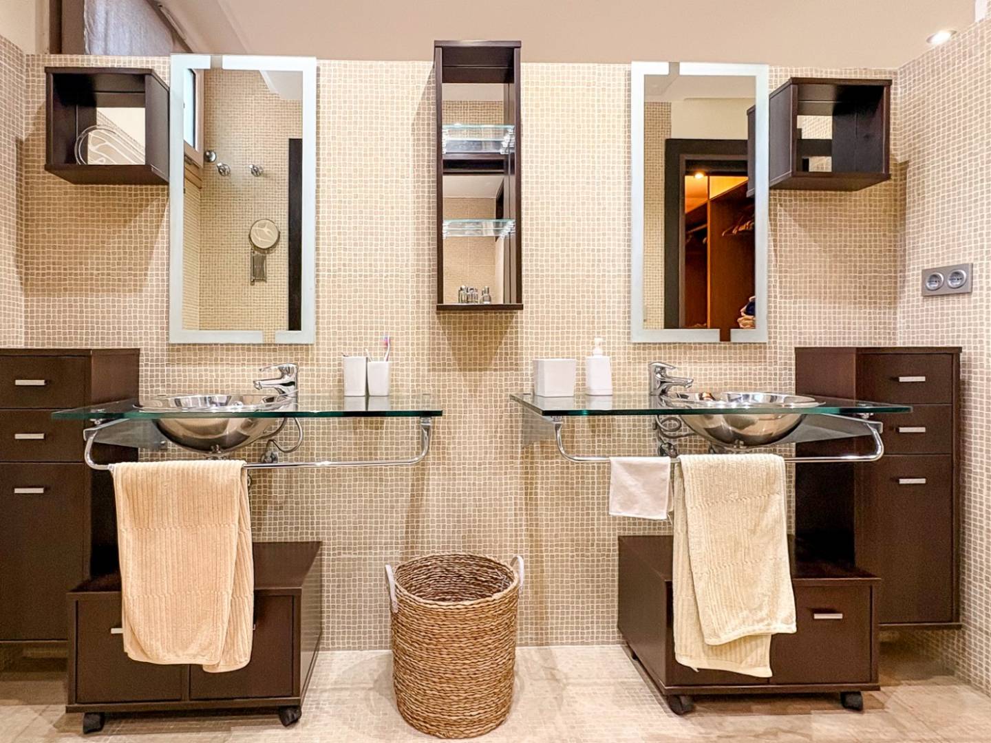 The villa's exterior has been designed to offer multiple spaces. The house is surrounded by terraces all around its perimeter , including a barbecue area , an outdoor shower , and a beautifully landscaped English garden in the basement area , adding character and distinction to the property.