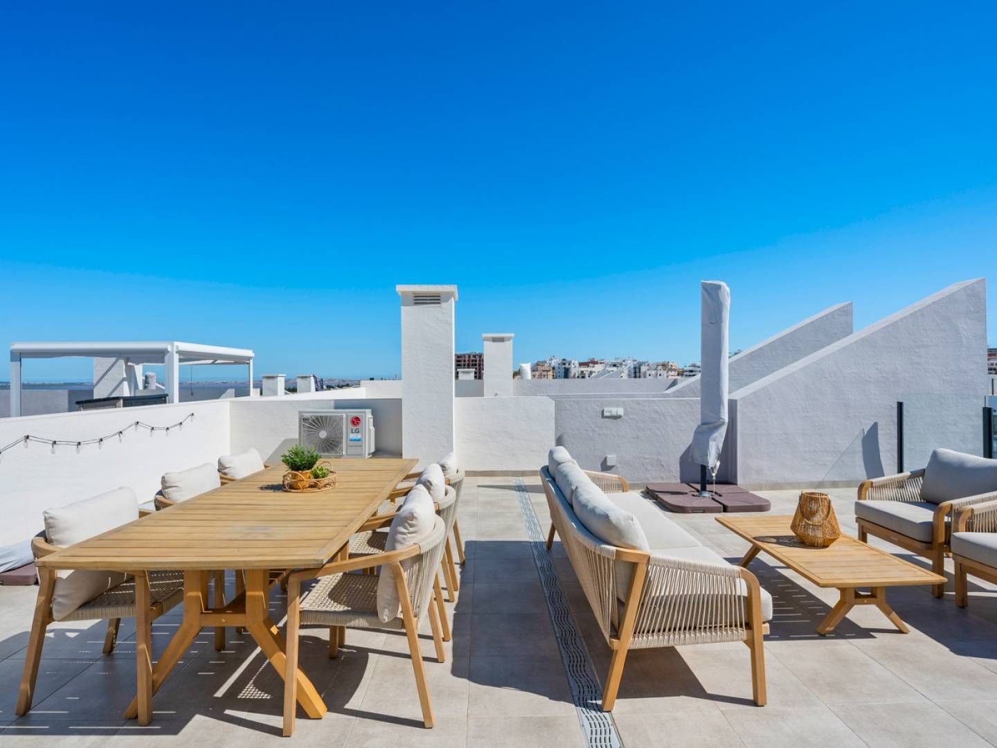 Located in San Miguel de Salinas , this recently built penthouse boasts a prime location within a small, private, and welcoming residential complex where tranquility, privacy, and comfort are paramount. The apartment features two bedrooms and two bathrooms , and offers a modern layout with an open-plan living-dining room and kitchen , creating a bright and elegant atmosphere ideal for everyday living. From the living room, you can access a pleasant terrace overlooking the communal pool , perfect for enjoying the Mediterranean climate year-round. The property also includes a spacious private solarium with breathtaking panoramic views of the nature reserves and the pink salt lake , a unique setting for relaxing, sunbathing, or enjoying evenings outdoors. The south-facing apartment is sold fully furnished and equipped , ready to move into. The gated and secure complex features a communal pool and play area , designed on a small scale to offer a peaceful and exclusive environment . Thanks to its excellent location, shops, restaurants, golf courses, and beaches are all within easy reach, making this property an ideal choice as a second home, rental investment, or permanent residence . A property that combines stunning views, quality, location, and tranquility on the Costa Blanca.
