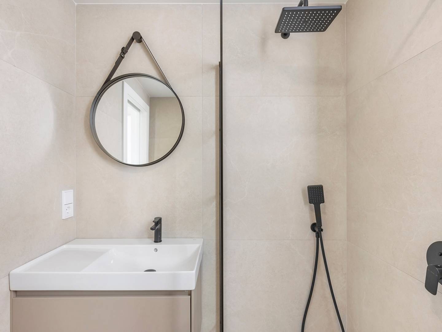The homes boast interiors that are both stylish and functional, complemented by private gardens and terraces. These outdoor spaces are perfect for dining under the sun or simply relaxing in the fresh air. A spacious solarium adds a touch of luxury, creating a serene spot for unwinding in privacy. Each property is equipped with air conditioning, ensuring a comfortable living environment throughout the year. The presence of a garage offers secure and convenient parking for homeowners.