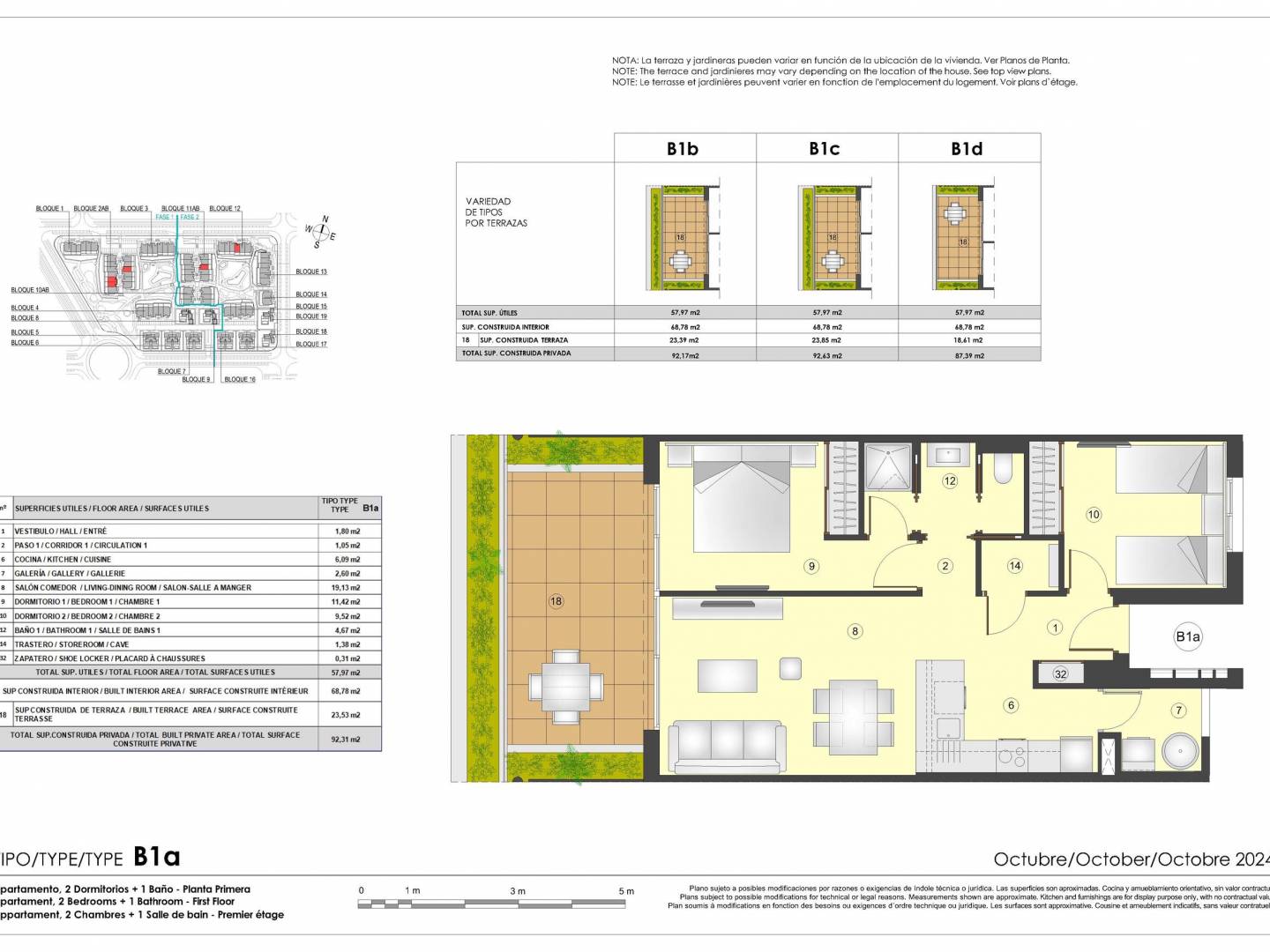 The interior of the homes is designed to offer maximum comfort and functionality. Layout options include homes with 1 to 3 bedrooms and 1 to 3 bathrooms, adapting to different family needs. All properties are equipped with air conditioning and underfloor heating, ensuring a pleasant environment throughout the year. Built-in wardrobes optimize storage space, while included appliances and furniture facilitate a hassle-free move. The use of ceramic flooring adds a touch of elegance and durability to the interiors.