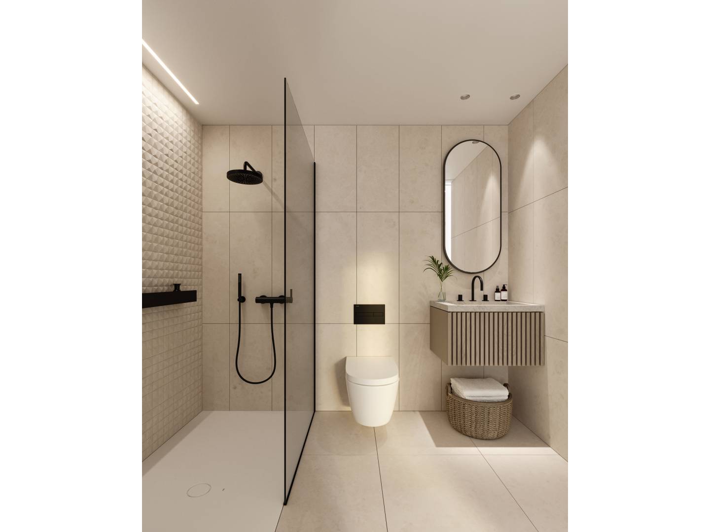 The interior of the homes in this residential complex in Calpe is designed to offer maximum comfort and functionality. The apartments and penthouses are available in 2 and 3-bedroom configurations, all with 2 bathrooms, providing adequate space for families or couples. The homes feature air conditioning to maintain a pleasant temperature throughout the year. Integrated home automation allows efficient control of home functions, enhancing comfort and security. High-quality appliances are included, ensuring each kitchen is ready for use from day one. Built-in wardrobes offer practical and efficient storage, while electric shutters and a video intercom add an additional level of security and comfort.