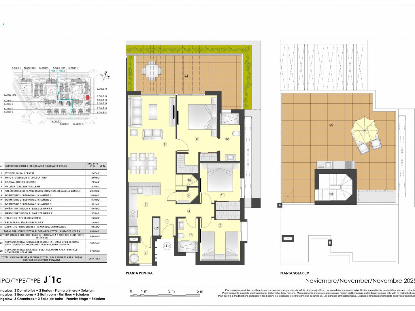 The outdoor spaces of these bungalows are designed to maximize enjoyment of the Mediterranean climate. Each property features a private garden, perfect for outdoor activities or simply relaxing. Additionally, the terraces provide extra space to enjoy the views and surroundings. For those seeking a more exclusive space, the solarium offers an ideal spot for sunbathing in complete privacy.