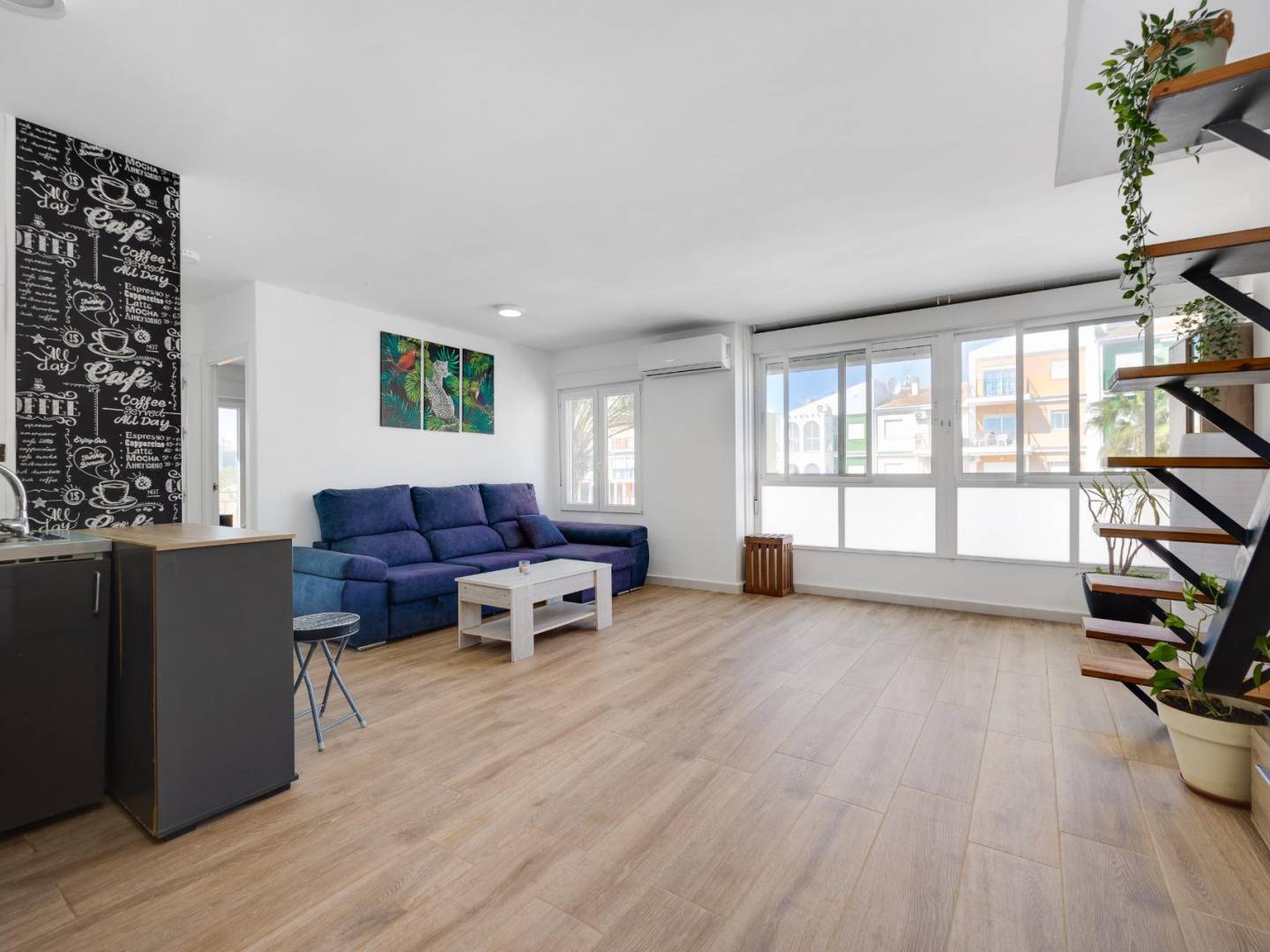 We present this incredible opportunity to own a stunning duplex penthouse located in the sought-after area of La Veleta, Torrevieja. Situated only approximately 150 meters from the shimmering sea, this property is on the second floor and boasts a generous surface area of 54 m2. It features two spacious bedrooms and one modern bathroom . The open-plan kitchen comes fully equipped for your convenience . The bright living-dining room offers an abundance of natural light thanks to its exterior orientation .~~One of the highlights is direct access from inside to your private solarium measuring 35 m2 with breathtaking views over the Mediterranean Sea perfect for sunbathing or hosting gatherings!~~This fantastic property represents a great opportunity just steps away from tranquil beaches one of Torrevieja's finest neighborhoods! With essential services nearby including bars, restaurants, and shops ; Orihuela Costa is also conveniently reachable within just five minutes by car .~Enjoy leisurely strolls as you are merely ten minutes on foot away from Punta Prima along with all its amenities .~
