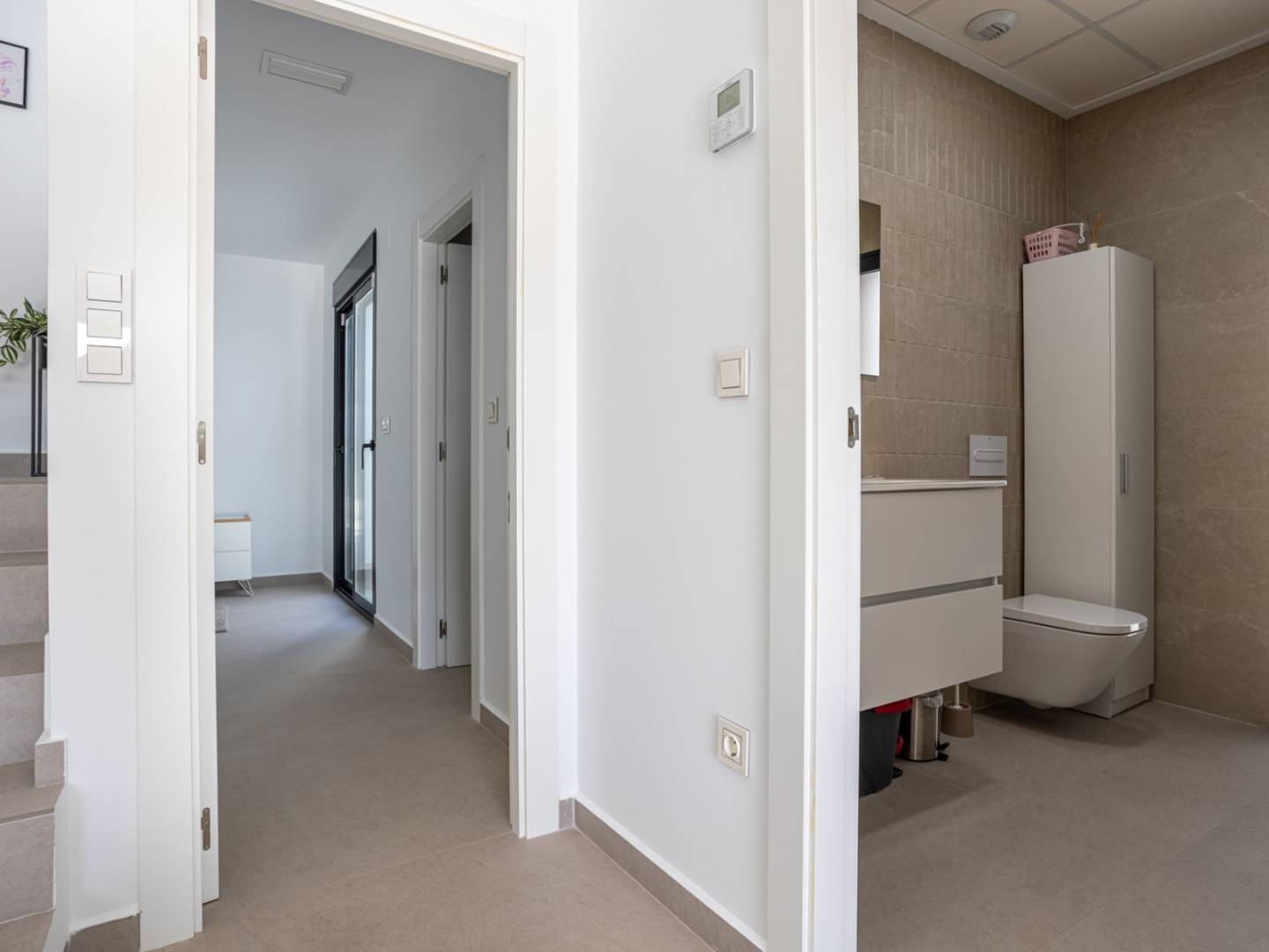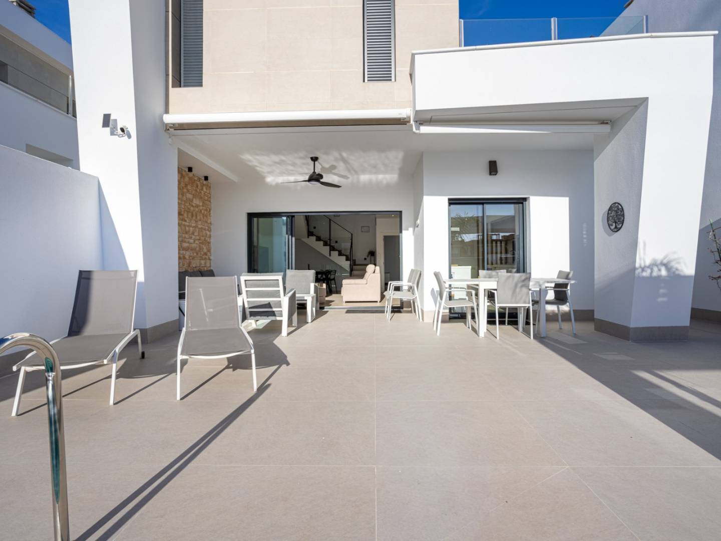 Discover this charming, practically new, detached designer villa that perfectly blends contemporary design, energy efficiency, and high investment potential . Situated on a private 238 m² plot with a built area of approximately 150 m² , this property has been designed to maximize natural light, spaciousness, and the connection between indoor and outdoor spaces . From the moment you step inside, the elegant open-plan living room impresses with its modern lines and large windows, seamlessly integrating with a fully equipped kitchen featuring high-end appliances , ideal for both everyday use and entertaining. The main house boasts three spacious bedrooms , two modern bathrooms , and a guest toilet , all designed with high-quality materials and meticulous attention to detail. As an added bonus, the large habitable basement includes an additional bedroom and offers multiple possibilities such as a guest suite, gym, cinema room, or private office . Outside, the property offers a true oasis with a private 6x3 meter swimming pool , spacious terrace areas, and a low-maintenance setting, perfect for enjoying the Mediterranean lifestyle in complete privacy. It also features private parking within the grounds . Equipped with central air conditioning, electric blinds, and 12 solar panels , it guarantees comfort and energy efficiency year-round. Sold fully furnished and with a tourist license , it presents an excellent investment opportunity with high returns or is ready to move into.