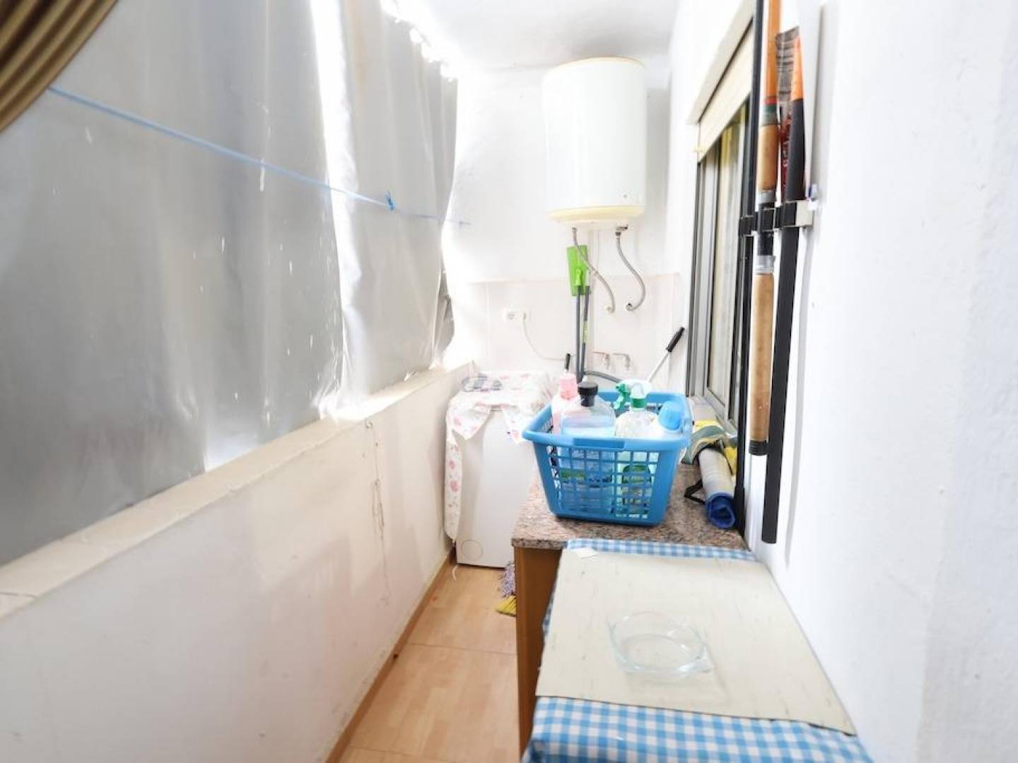 Acequión Beach: second-floor apartment with elevator. This 85 m2 property features 3 bedrooms, 1 bathroom, a separate kitchen with a utility room, and a terrace with side sea views. The apartment is sold furnished and is located very close to the beach
