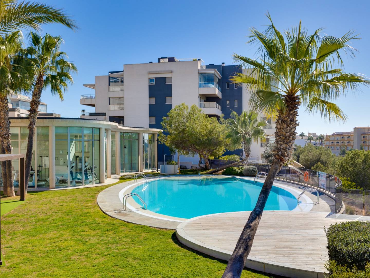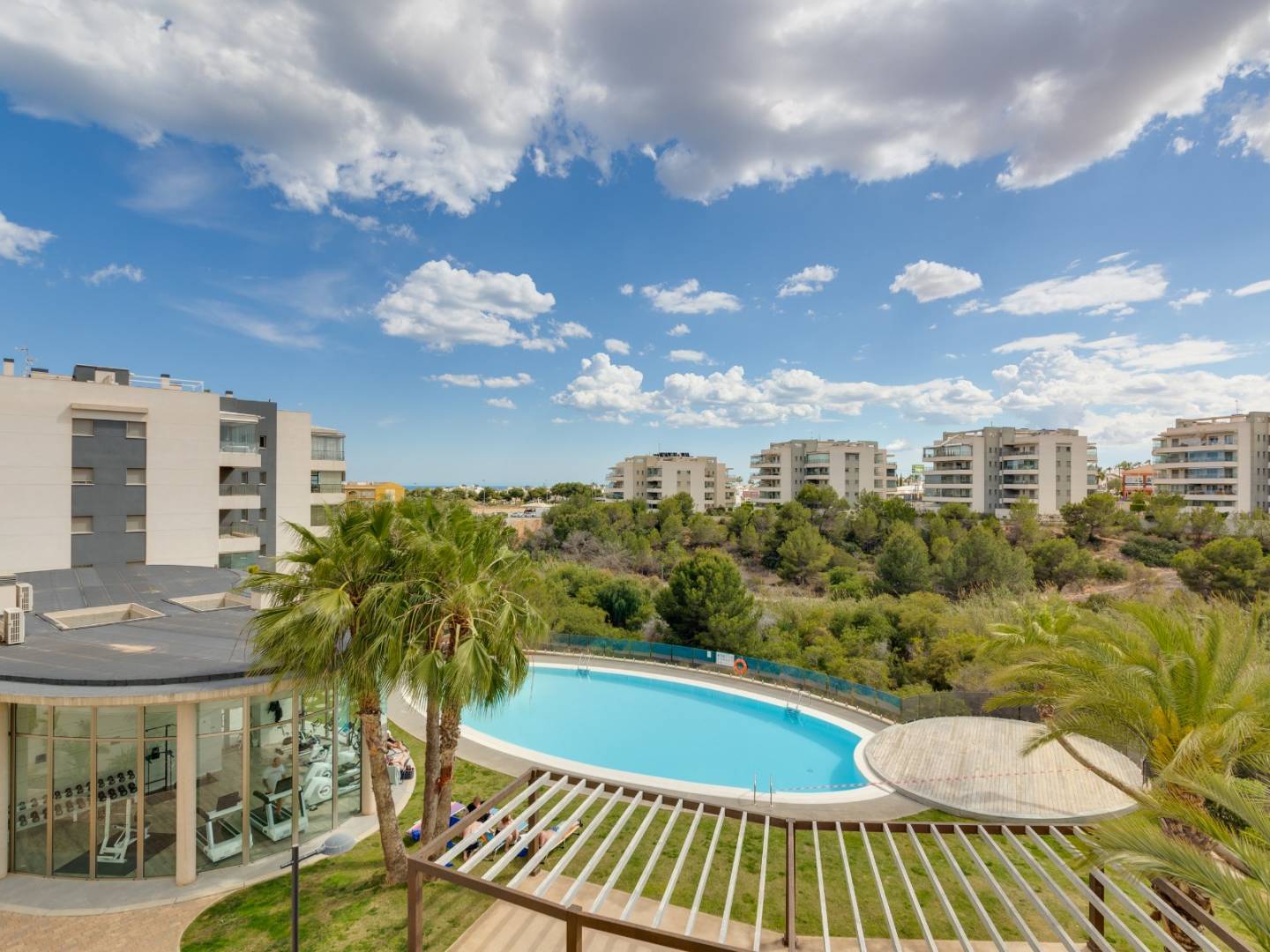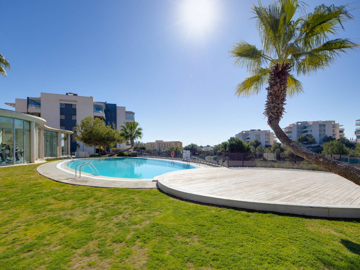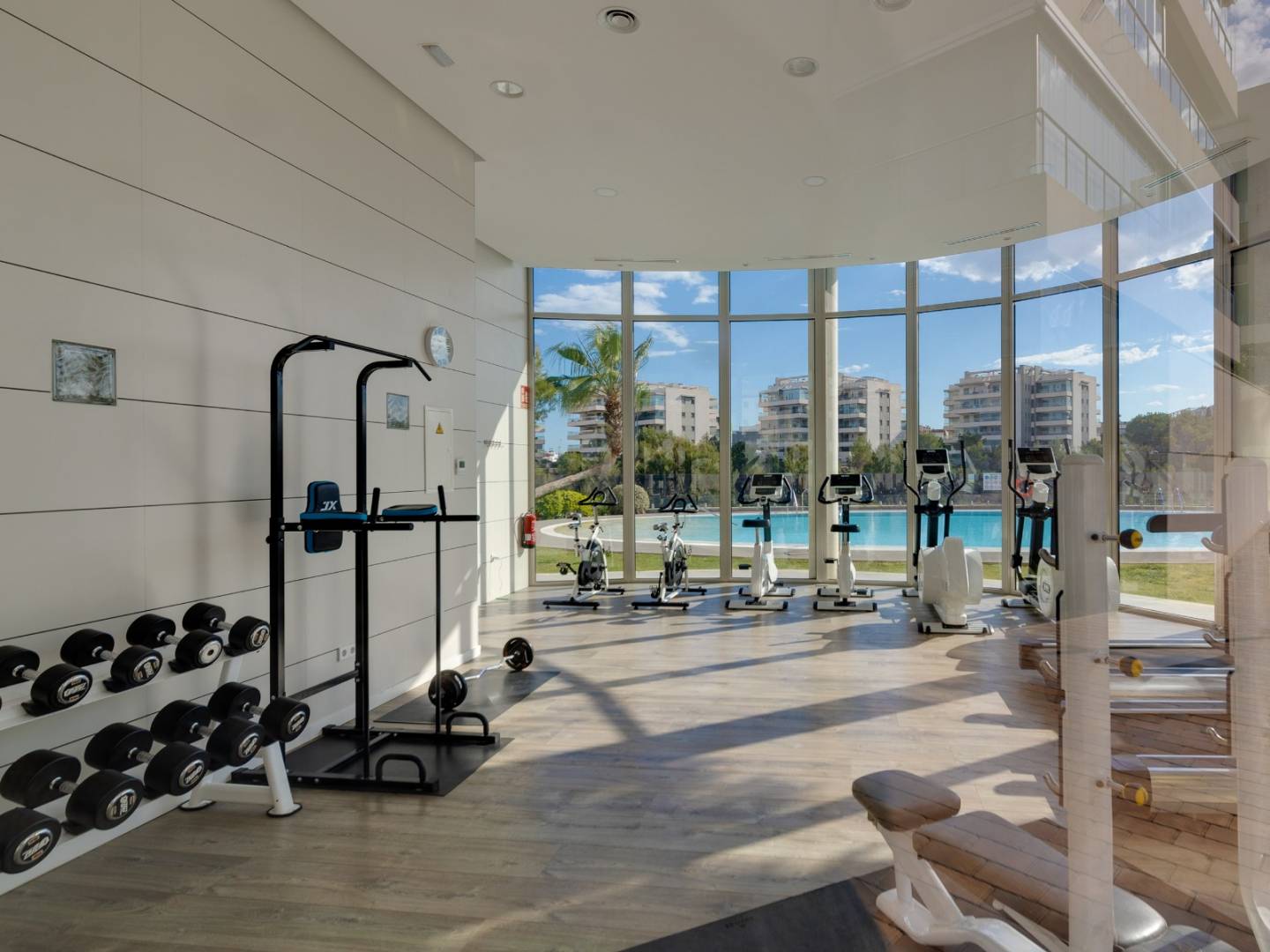 It is sold fully furnished and equipped , including air conditioning , guaranteeing a move-in ready experience. It also includes a covered parking space in a shared garage , providing convenience and security. The residential complex elevates the standard of living with a variety of premium communal areas , including swimming pools, a gym, landscaped gardens, a children's play area, and a sauna , all designed for the well-being of the whole family.