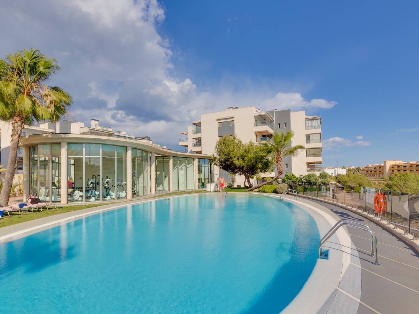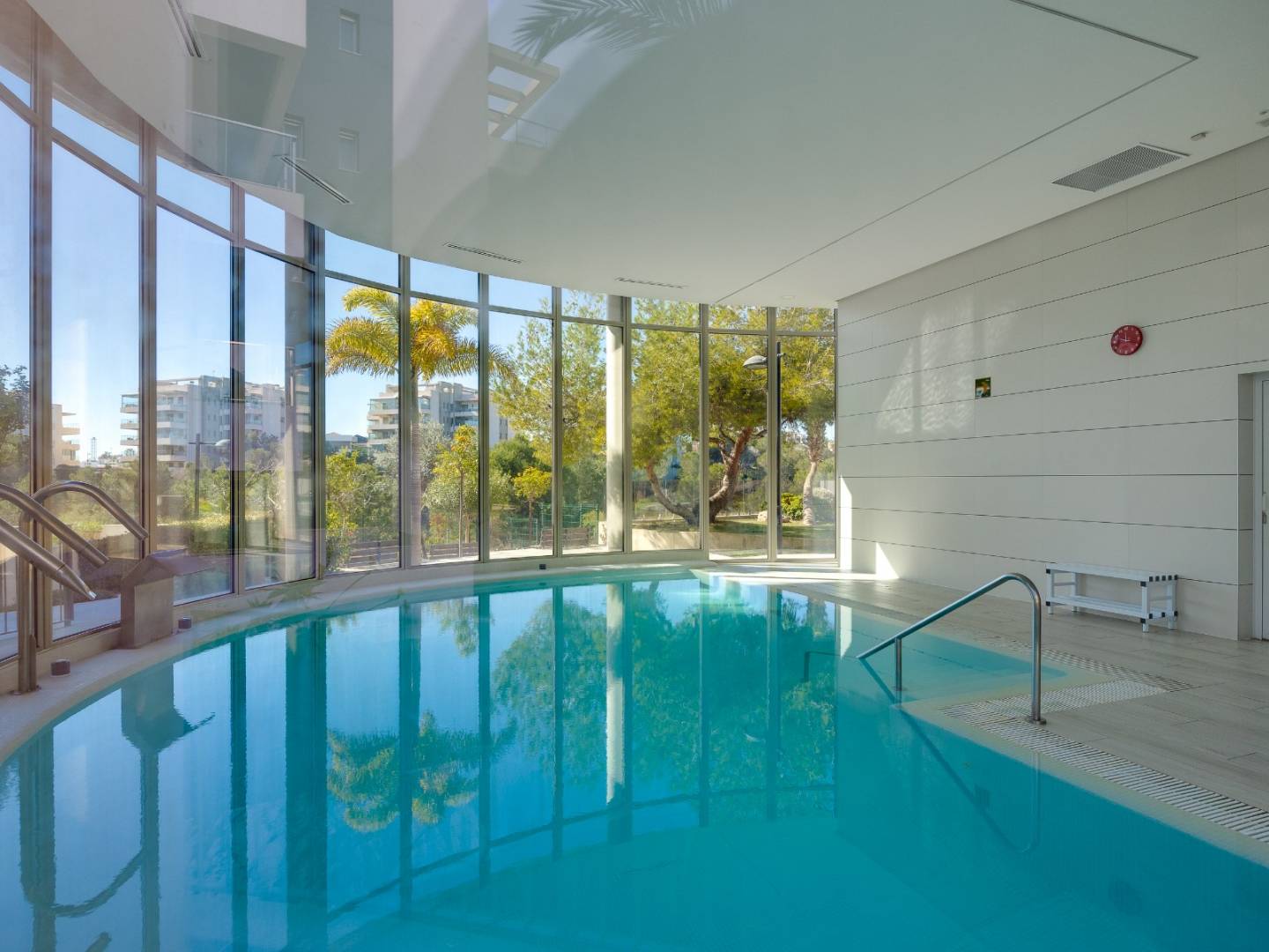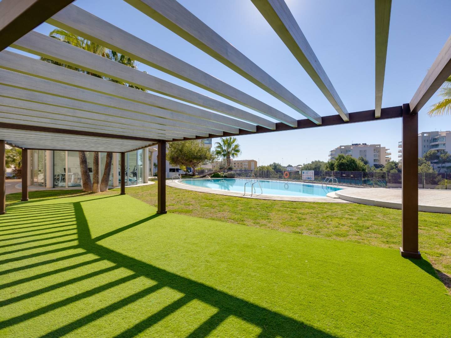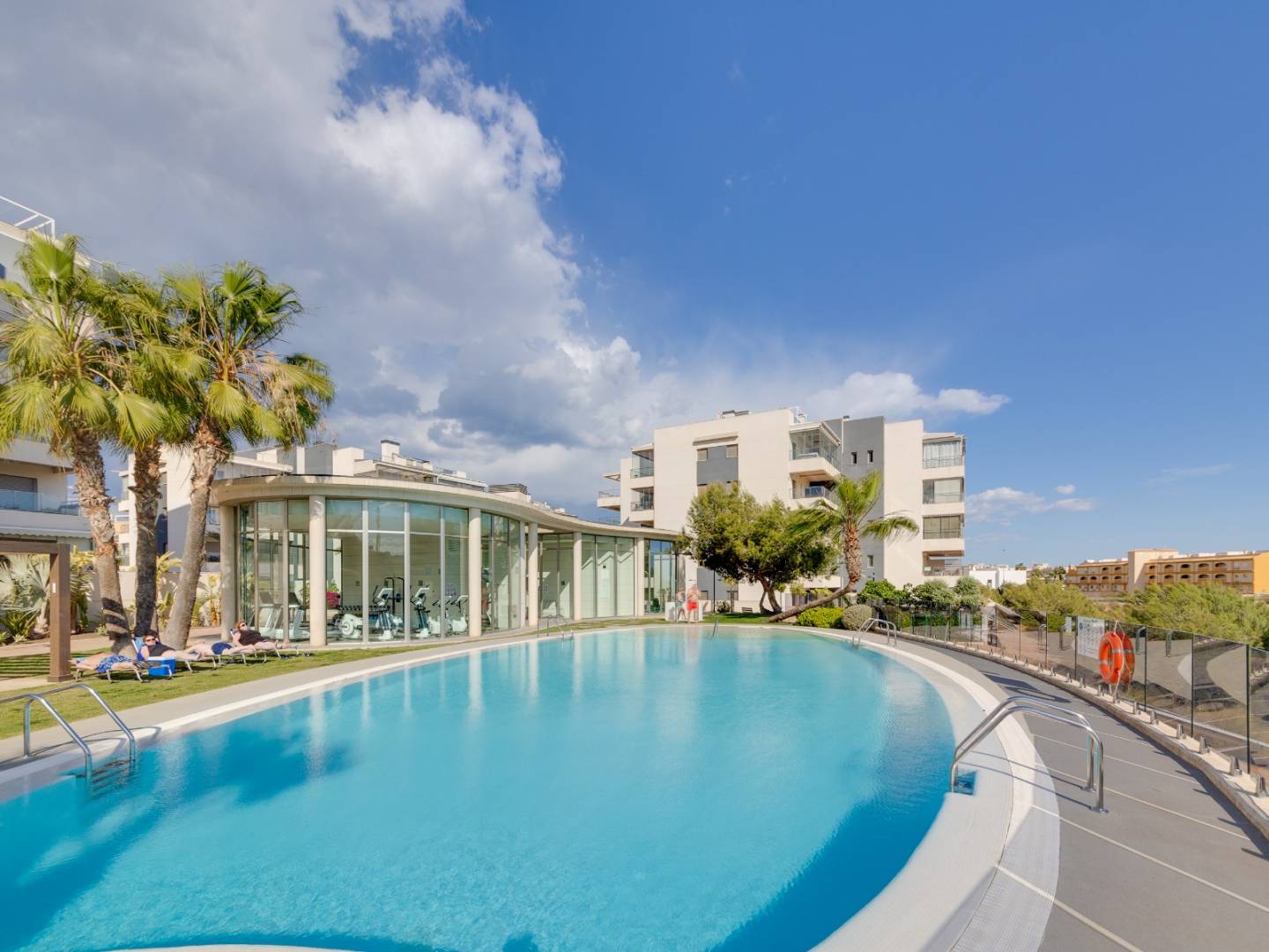 It is sold fully furnished and equipped , including air conditioning , guaranteeing a move-in ready experience. It also includes a covered parking space in a shared garage , providing convenience and security. The residential complex elevates the standard of living with a variety of premium communal areas , including swimming pools, a gym, landscaped gardens, a children's play area, and a sauna , all designed for the well-being of the whole family.