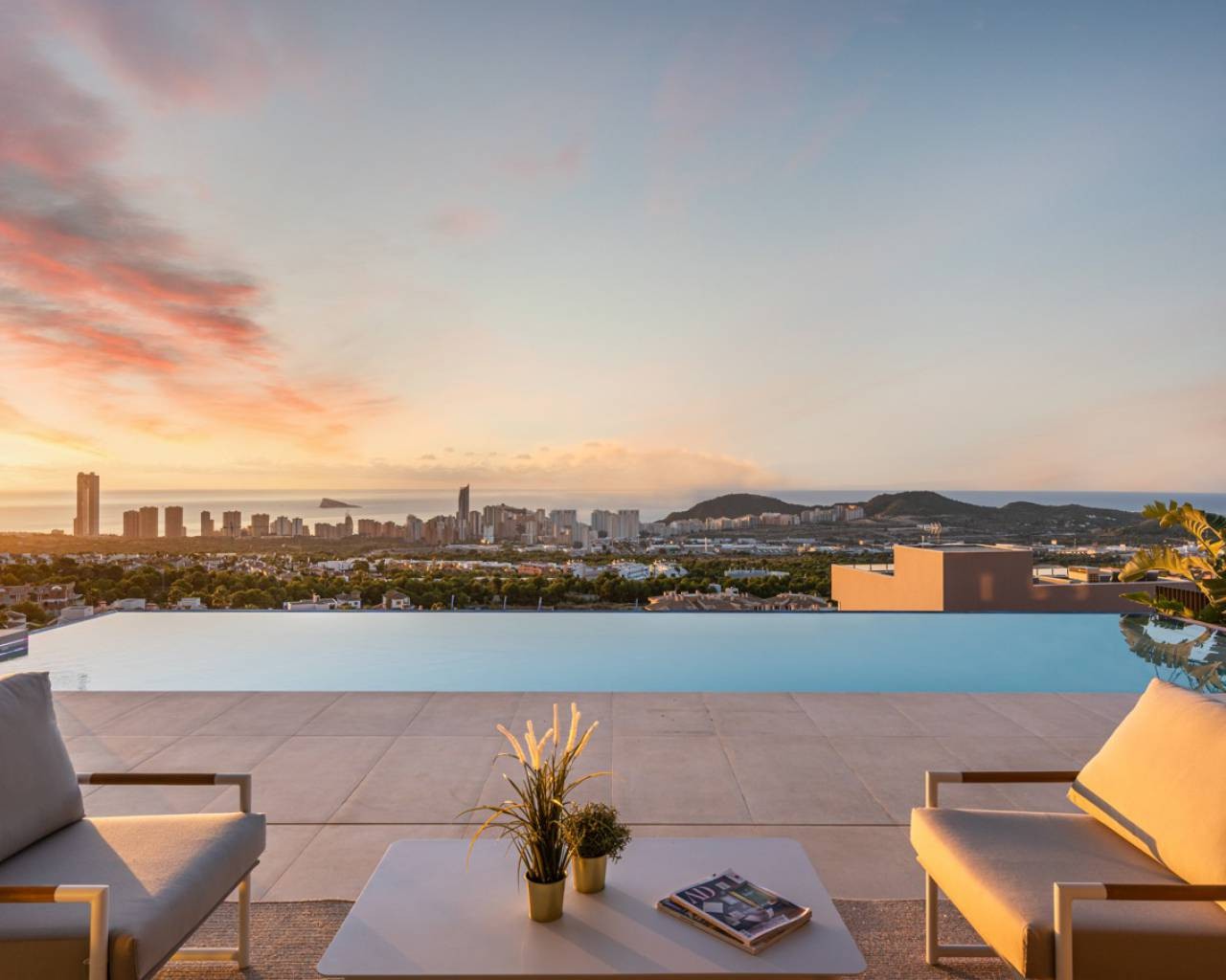 Si vous voulez une maison de luxe sur la Costa Blanca, vous serez impressionné lorsque vous visiterez nos villas à vendre à Finestrat. Dans nos fabuleuses villas, vous trouverez tout ce dont vous avez besoin pour être heureux. Avec des vues spectaculaires sur Benidorm et la mer Méditerranée, nos villas de conception moderne sont construites selon les normes de qualité les plus élevées, avec air conditionné, chauffage, porte blindée, ascenseur, interphone, façades vitrées, ....