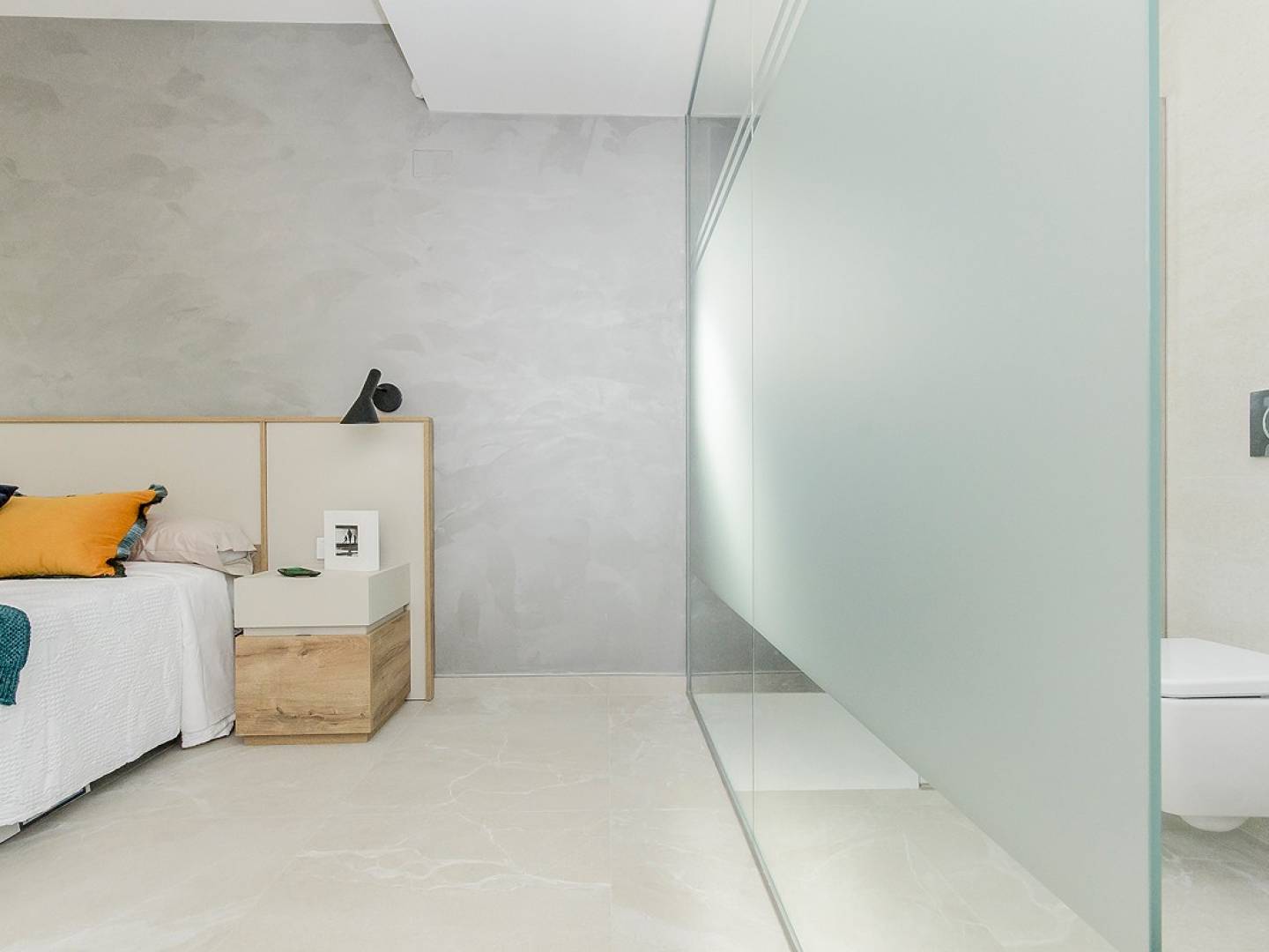 Les bungalows disposent de 2 ou 3 grandes chambres et de 2 salles de bains . Vous pouvez choisir entre le premier étage avec une grande terrasse d'au moins 90 m2, où vous pourrez profiter des jardins, et il y a aussi une place de parking pour la voiture ou un deuxième étage avec un solarium de 77 m2.