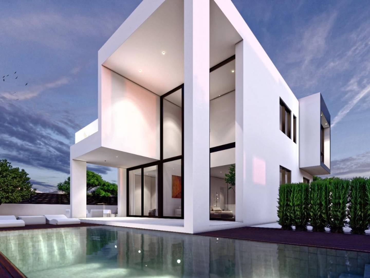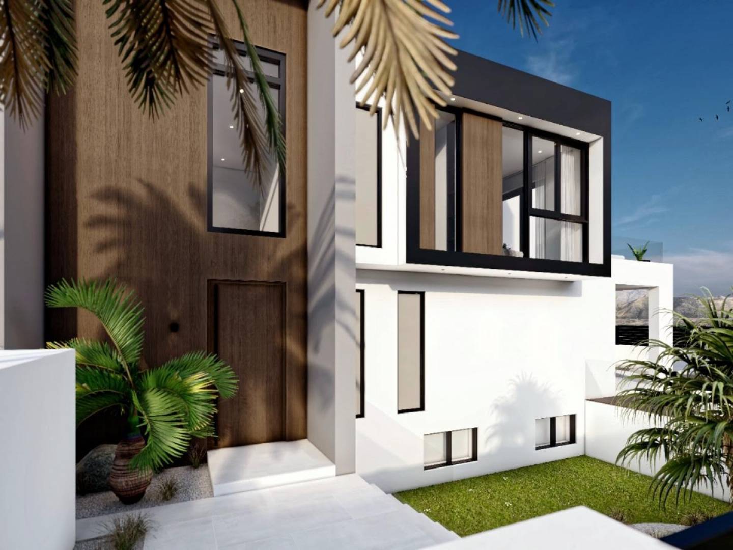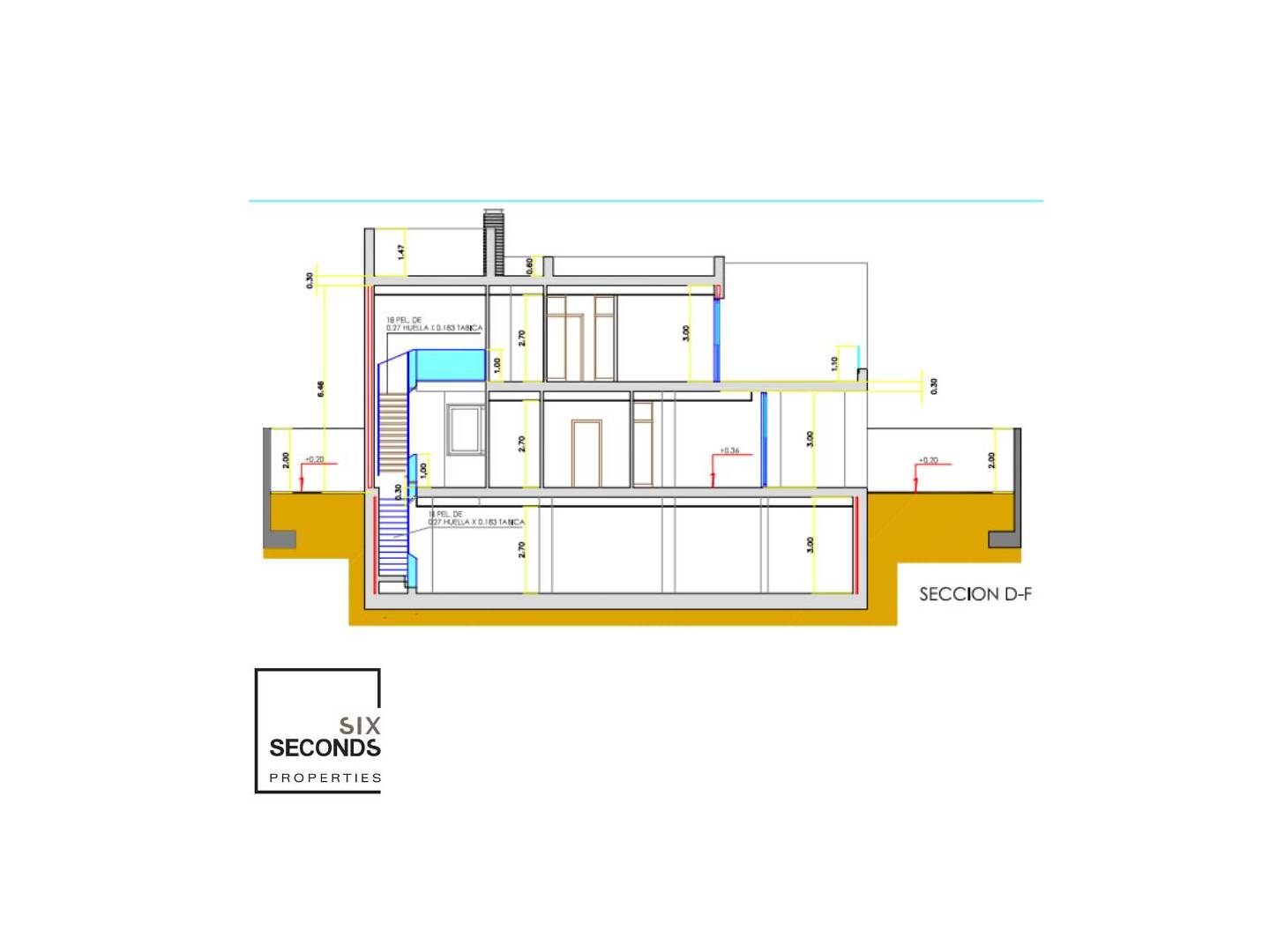 La construction dispose de 212 m2 de surface totale avec terrasses sur un terrain de 354 m2 avec une grande piscine, porche couvert pour le stationnement de 3 voitures, sous-sol, jardin privé. La maison est configurée sur trois niveaux :
