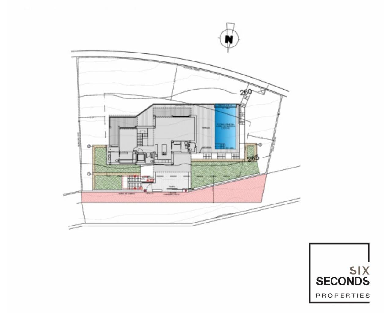 Elle est construite sur trois niveaux, l'accès se fait par le niveau le plus élevé, qui abrite le garage et le hall de la maison, équipé d'un ascenseur, de sorte que le déplacement entre les niveaux est confortable. L'étage intermédiaire abrite trois chambres, toutes dotées de salles de bains attenantes et d'un accès à une terrasse permettant de profiter de la mer depuis chaque pièce de la maison. Au rez-de-chaussée se trouve la quatrième chambre de cette villa, avec également un accès direct à la terrasse et à toute la zone jour, un grand salon ouvert relié à la cuisine, à la terrasse et à la piscine.