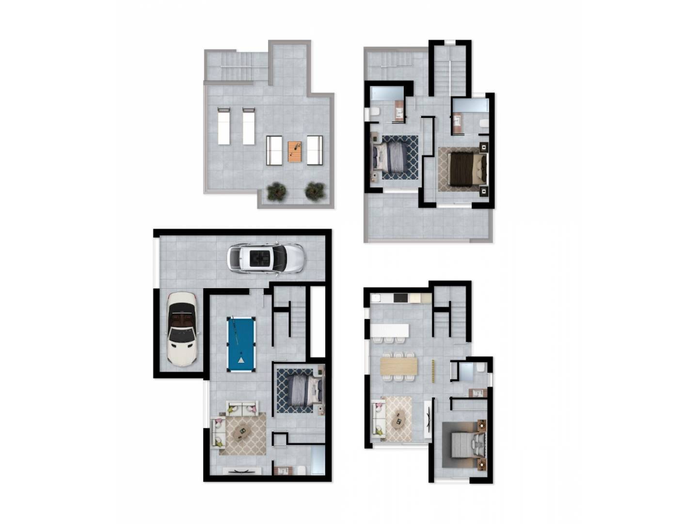 Chaque maison dispose de son propre terrain privé, où il est possible d'aménager différents espaces de loisirs et d'agrément, car les terrains s'adaptent au terrain. Avec vue sur la mer depuis le solarium.