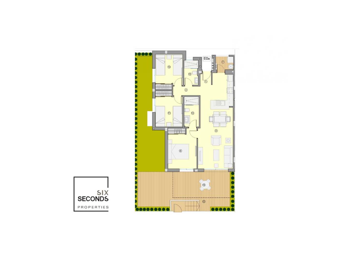 Concrètement, il s'agit d'un appartement au rez-de-chaussée avec jardin, 3 chambres et 2 salles de bain, avec la possibilité de personnaliser le bien. Vous préférez acheter votre appartement meublé et équipé ? Vous avez la possibilité de choisir entre deux styles d'équipement pour que votre maison soit prête le plus rapidement possible.