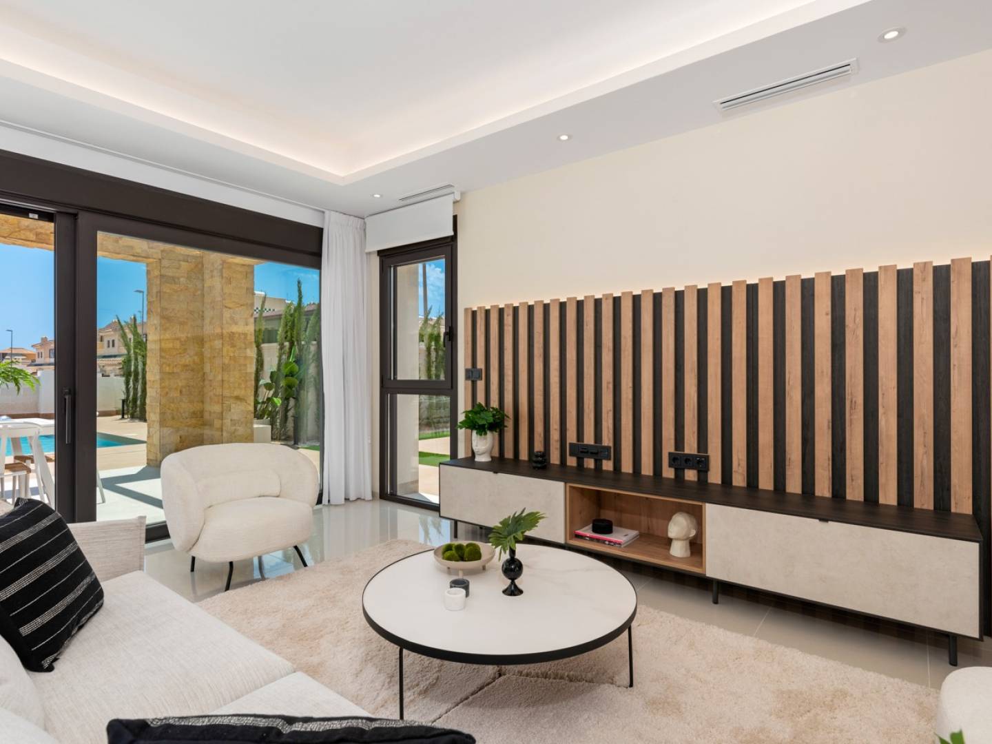 Villas de luxe neuves situées dans l'urbanisation Doña Pepa – Ciudad Quesada. Avec une architecture de style moderne, vous pourrez profiter de cette villa avec un jardin privé.