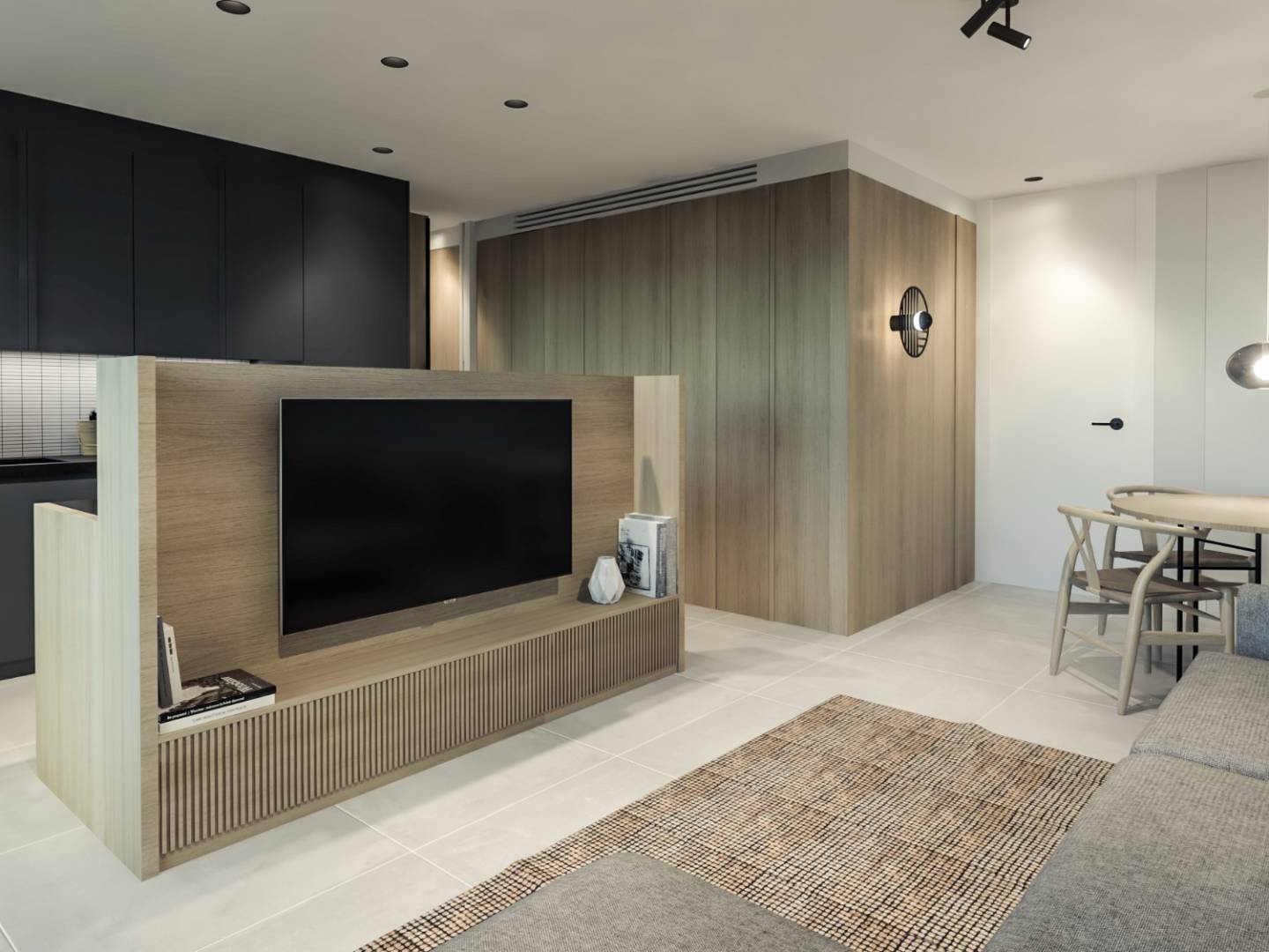 Dans ces appartements, l'espace et la lumière naturelle ont été privilégiés pour offrir une atmosphère chaleureuse. Chaque détail a été soigneusement pensé pour créer un lieu intime et relaxant dans la zone de repos. Les salles de bains sont revêtues de carreaux en grès cérame grand format et disposent de receveurs de douche préfabriqués en résine et de robinets mélangeurs noirs, qui ajoutent une touche d'élégance.