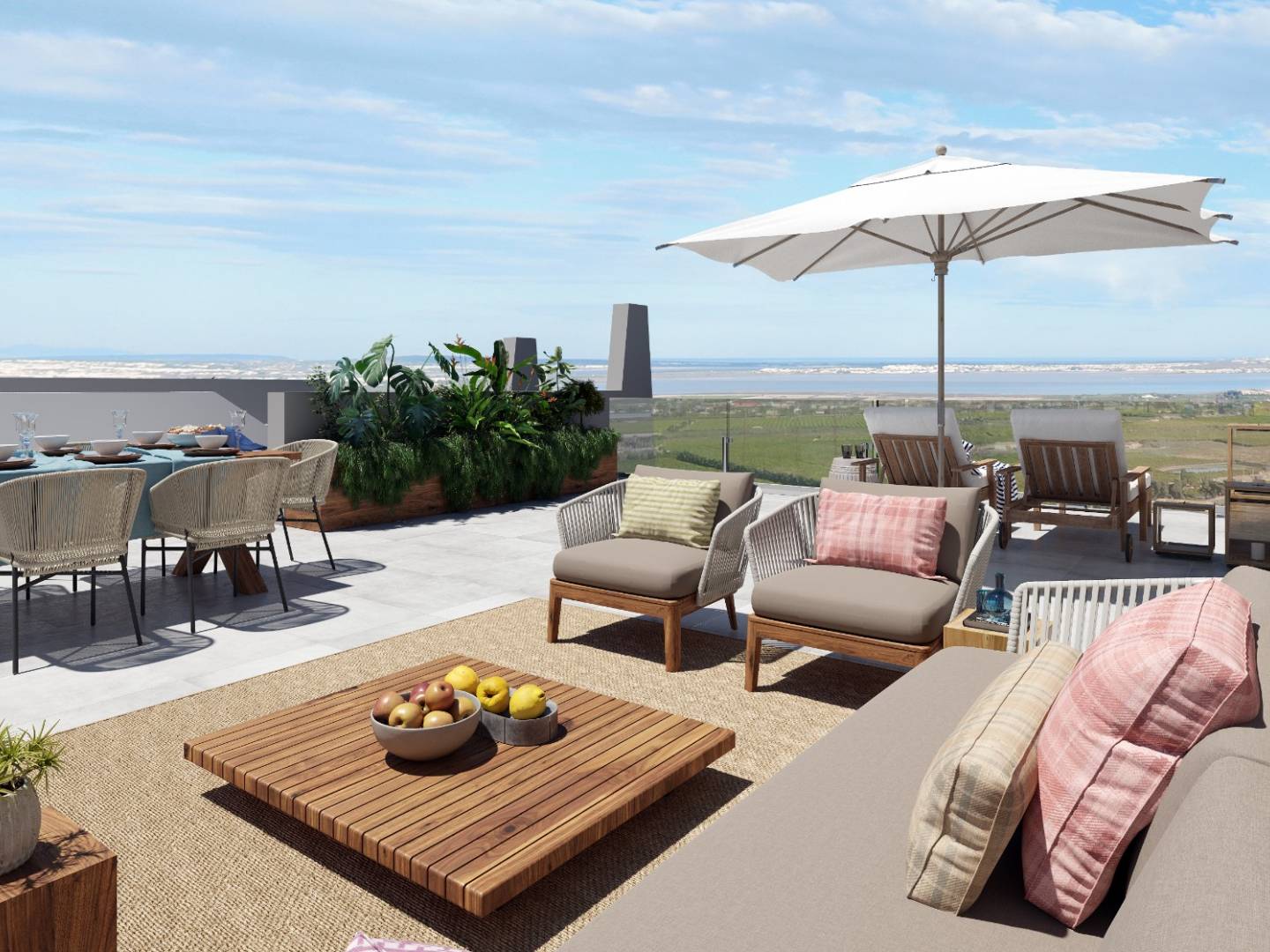 Nouvelle promotion de bungalows au rez-de-chaussée avec jardin et penthouse avec solarium à San Miguel de las Salinas, Alicante.
