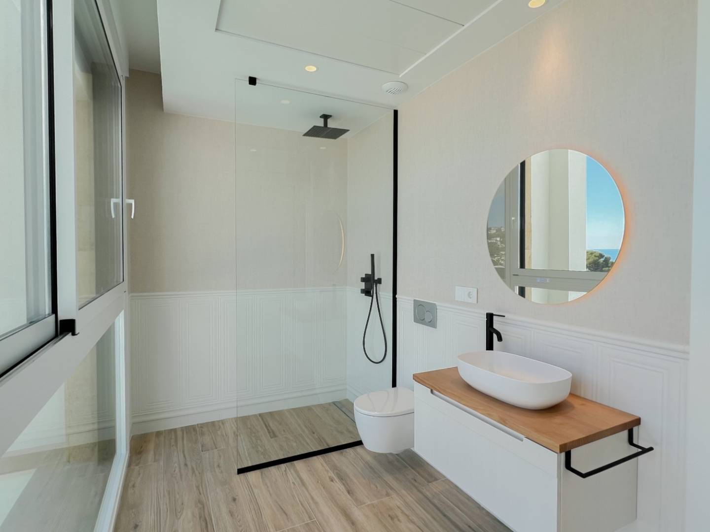 Villa flambant neuve avec fantastique piscine privée, jardin, solarium et vue sur la mer .