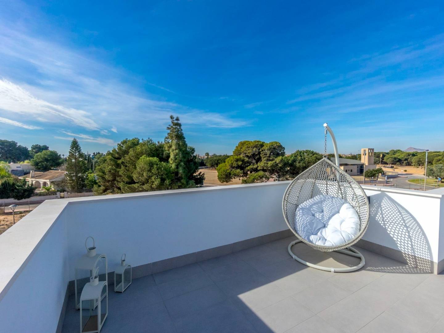 En montant les escaliers, vous accédez à la terrasse sur le toit où il y a beaucoup d'espace pour les meubles de terrasse, les chaises longues ou un jacuzzi et bien sûr une belle vue sur les environs et la forêt de pins de San Blas.