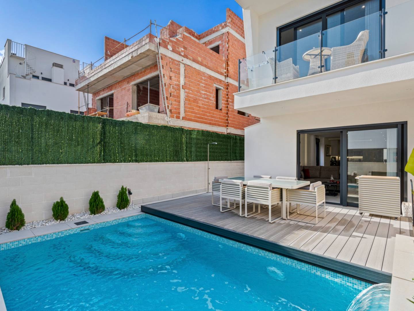 De plus, vous pouvez personnaliser la maison selon vos goûts et vos besoins en ajoutant les extras suivants tels que l'installation complète d'un système de climatisation pour un plus grand confort à l'intérieur de la maison, un jardin paysager avec une piscine privée de 5m x 3m pour profiter en famille et entre amis et se rafraîchir les jours les plus chauds, une installation complète d'ascenseur pour faciliter la mobilité à l'intérieur de la maison, une porte de garage automatique, un ensemble complet d'appareils de cuisine pour rendre l'entrée dans la maison le plus rapide possible, un ensemble d'éclairage LED et, comme nous l'avons déjà mentionné, un solarium où vous pourrez profiter du climat méditerranéen et de la vue sur la mer.