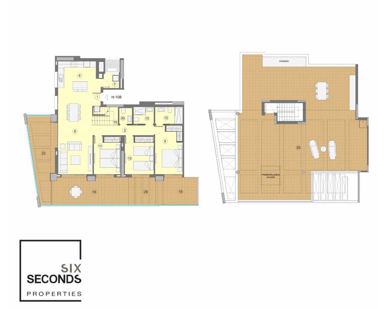 Les appartements penthouse disposent de 3 chambres et 3 salles de bains , avec de grandes terrasses et un solarium privé d'où vous pourrez profiter de la nature environnante, vous offrant une vue unique et relaxante. De plus, chaque appartement est livré avec une place de parking incluse.