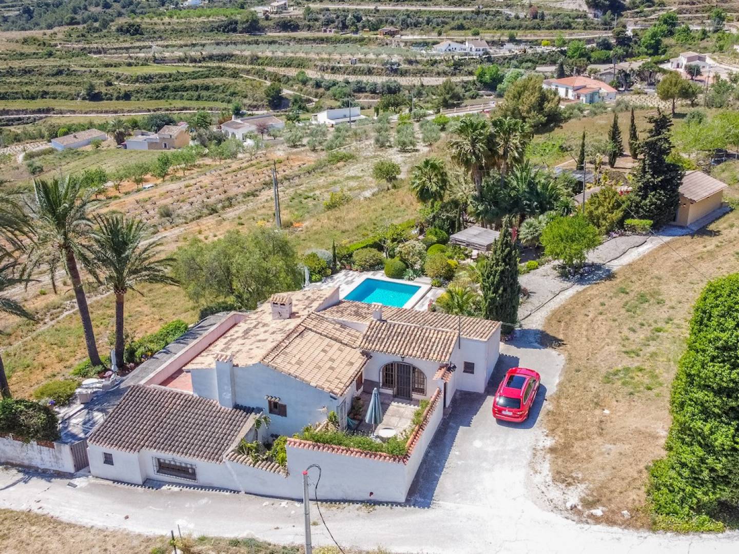 Les vues, comme s'il s'agissait d'une carte postale, s'ouvrent sur les verts champs de vignes avec la mer et le Cap d'or de Moraira en arrière-plan, construit sur le flanc d'une colline orientée sud-ouest, ce qui nous garantit le plaisir de le climat tempéré de la région, étant protégé du vent du nord et du vent du sud qui est la climatisation naturelle de la région pendant la saison estivale.