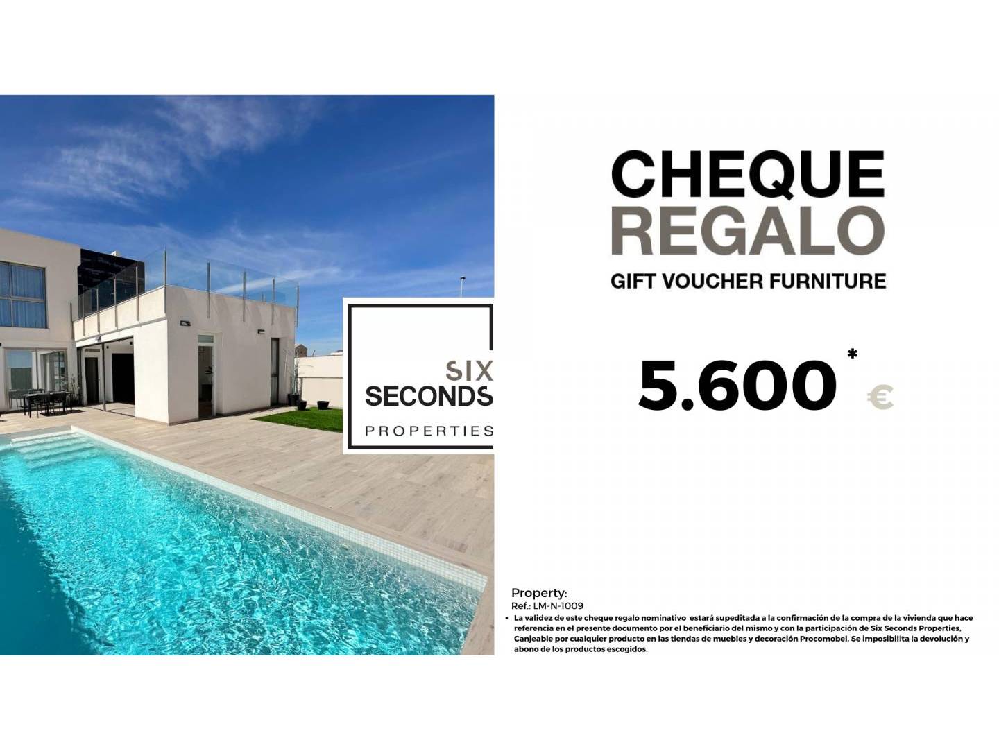 Chez Six Seconds Properties, nous vous aidons à transformer votre nouvelle propriété en la maison de vos rêves, en vous offrant un bon cadeau pour des meubles d'une valeur de 5 600 € et une visite technique de la propriété, où notre équipe technique vous conseillera sur les possibilités d'amélioration de la maison. Totalement gratuit !