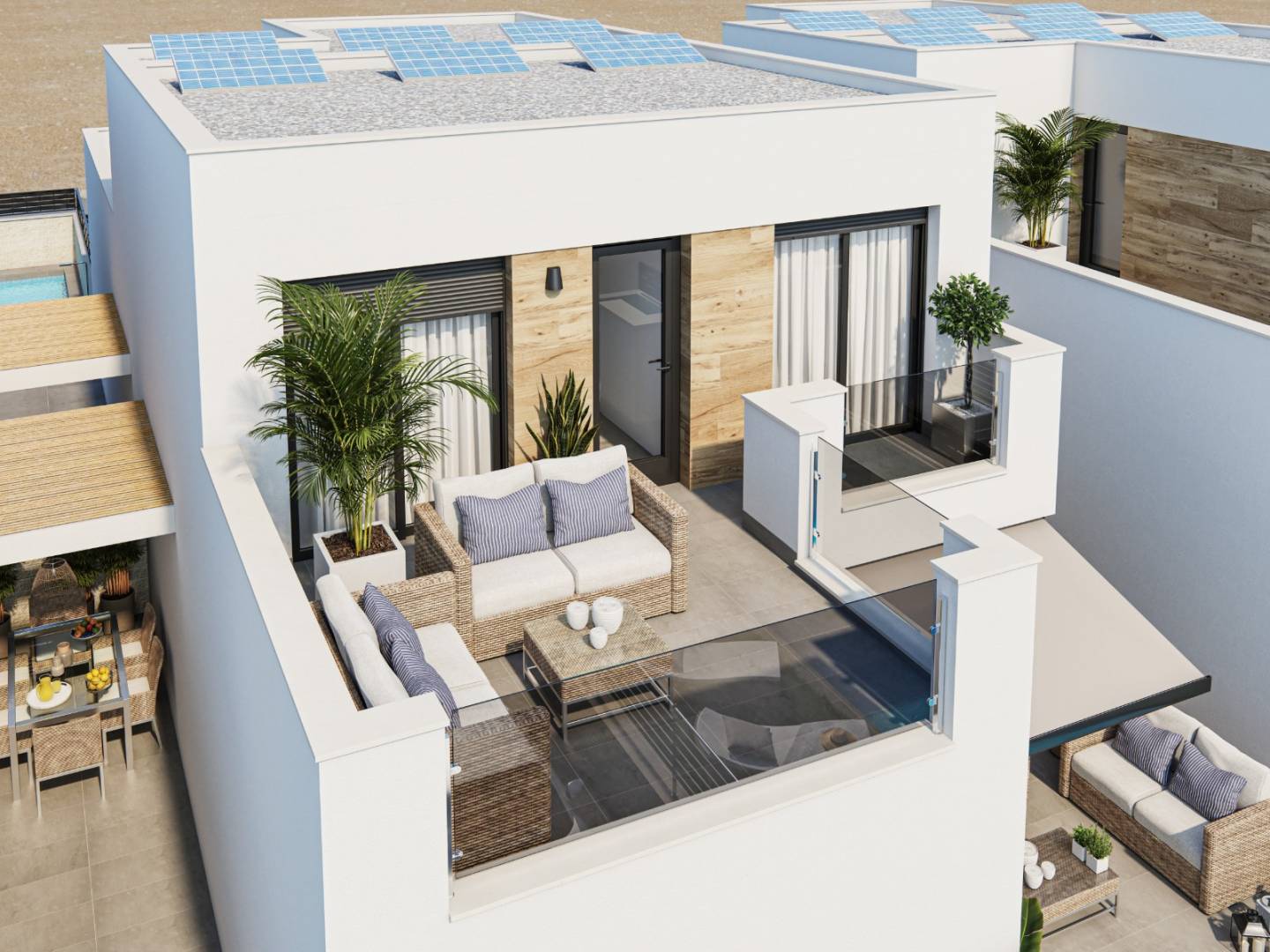 Dans chaque maison, vous trouverez un jardin privé avec une piscine exclusive, parfaite pour profiter de l'agréable climat méditerranéen pendant la majeure partie de l'année. Imaginez-vous vous détendre et vous rafraîchir dans votre propre piscine tout en profitant de moments inoubliables avec vos proches.