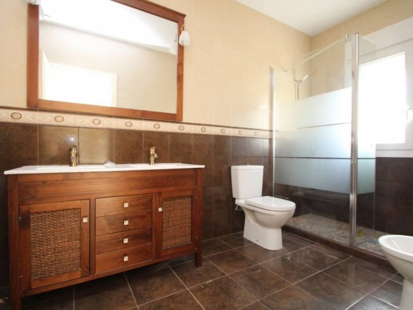 La propriété se compose de 4 grandes chambres ; l'un d'eux est idéalement situé au rez-de-chaussée, facilitant ainsi l'accessibilité. Trois des chambres ont le luxe de disposer de leur propre salle de bains et d'un accès à des terrasses privées , offrant ainsi un sanctuaire personnel à chaque résident. Au total, la maison dispose de 4 salles de bain complètes , toutes avec chauffage au sol , et de toilettes supplémentaires pour le confort des visiteurs.