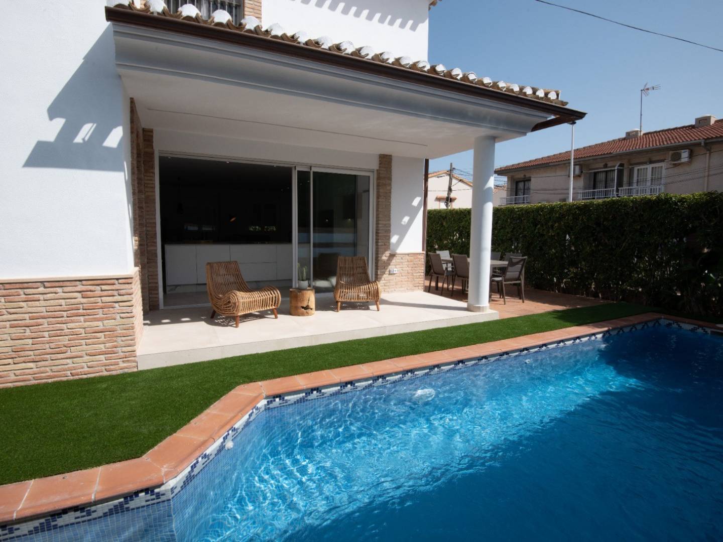 Imaginez des réunions de famille et des fêtes au bord de votre piscine privée sur la terrasse spacieuse. Cet espace extérieur est un havre de tranquillité où vous pourrez vous détendre et profiter du climat méditerranéen à toute heure.