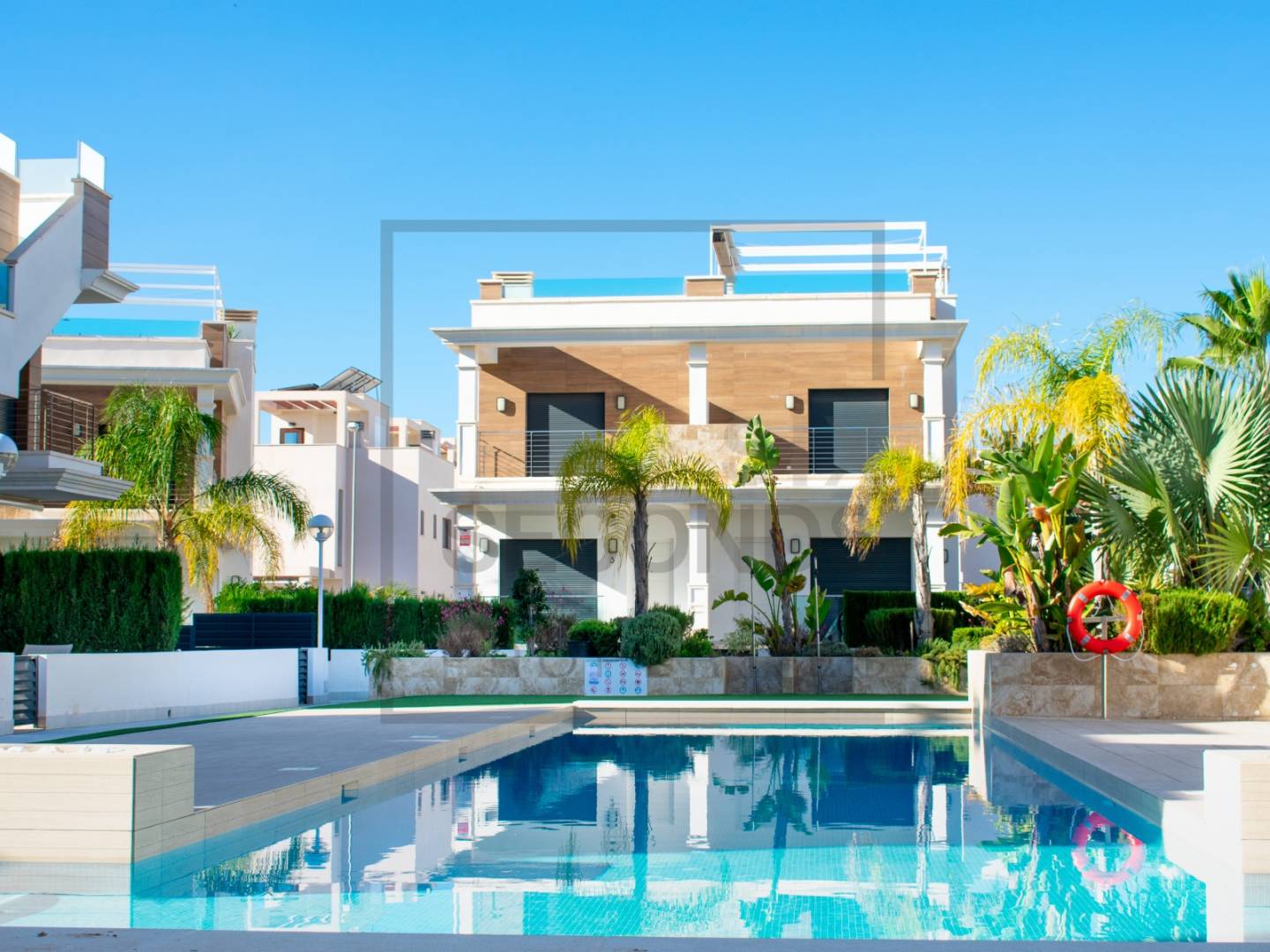 De plus, elle dispose d'une grande piscine commune entourée de jardins luxuriants, ce qui vous invite à en profiter pendant une grande partie de l'année.