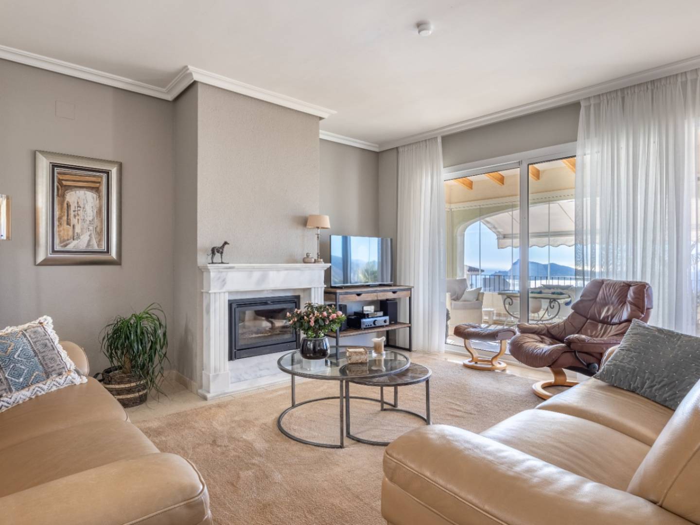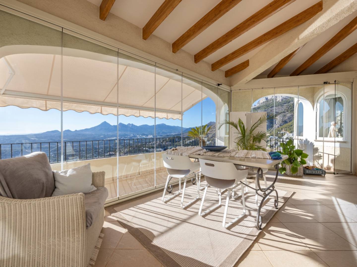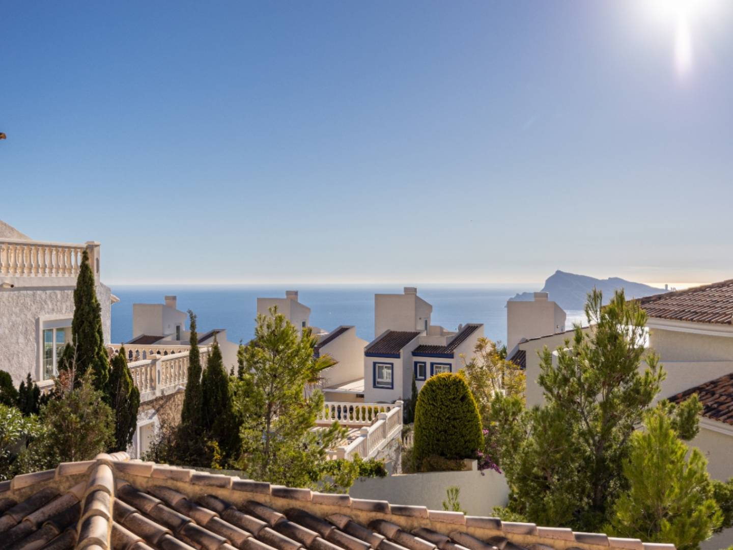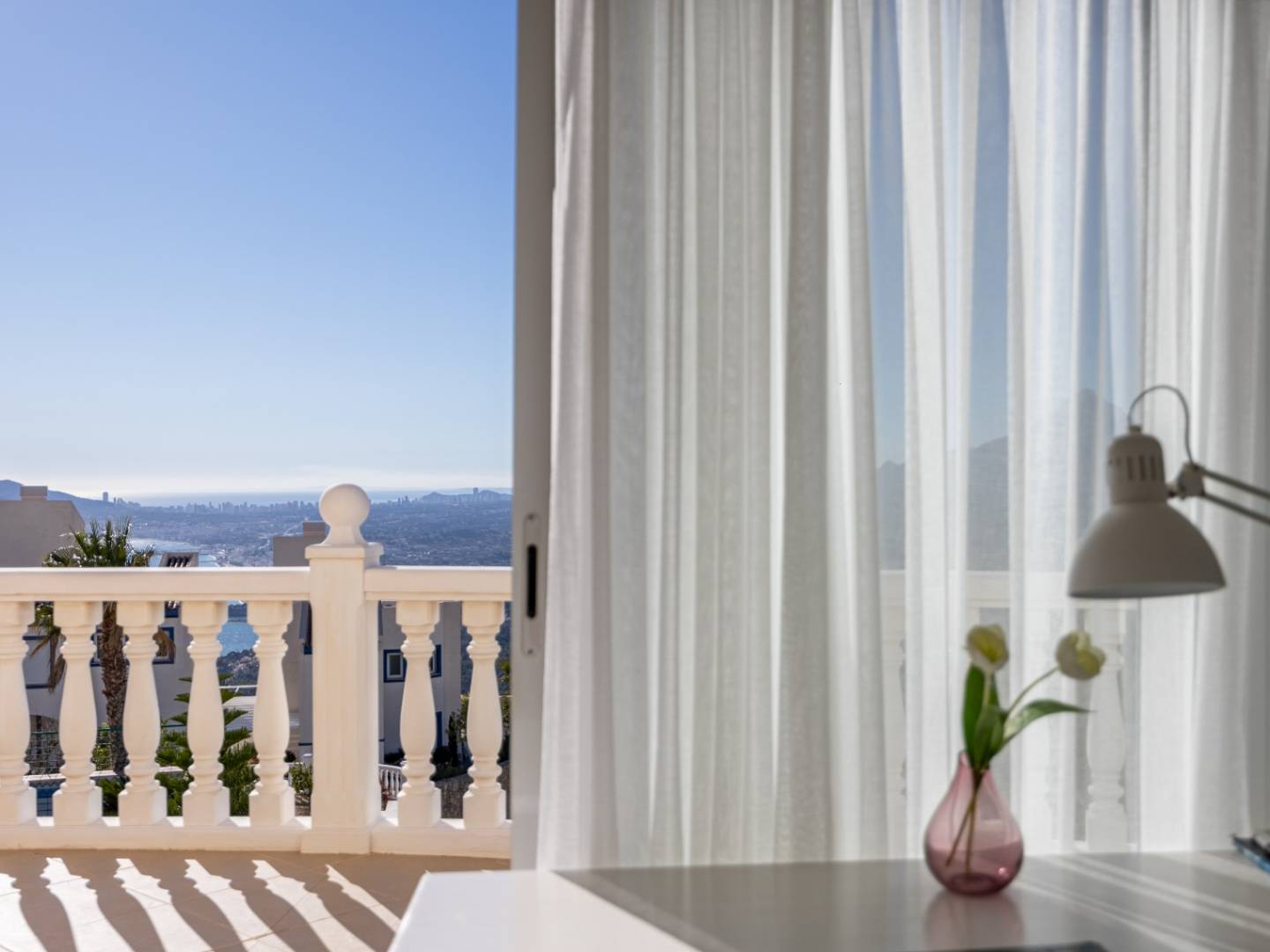 Avec une orientation sud-ouest , la maison offre une vue étendue d'Albir à Polop, avec la brillante ligne d'horizon de Benidorm visible la nuit.